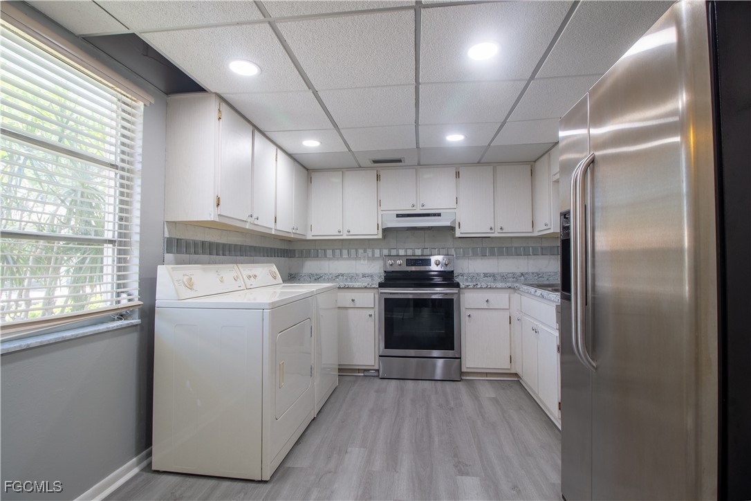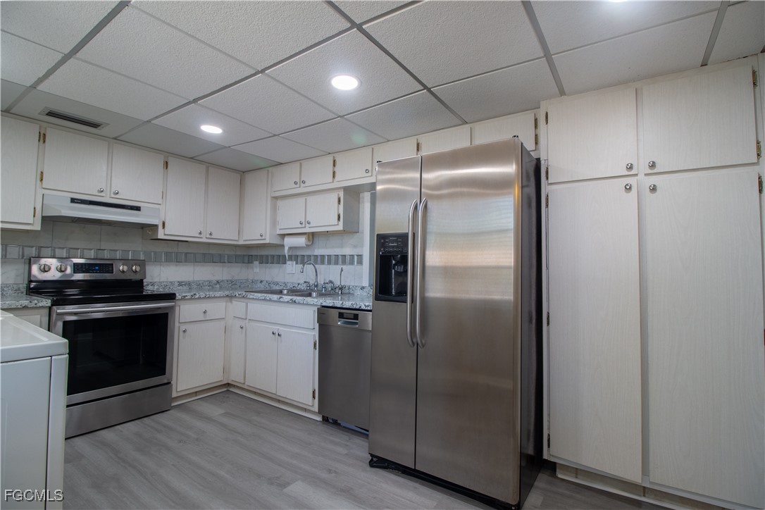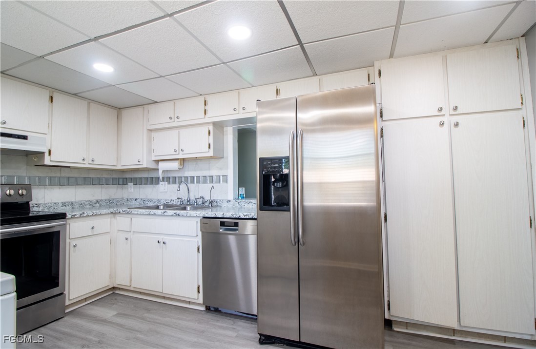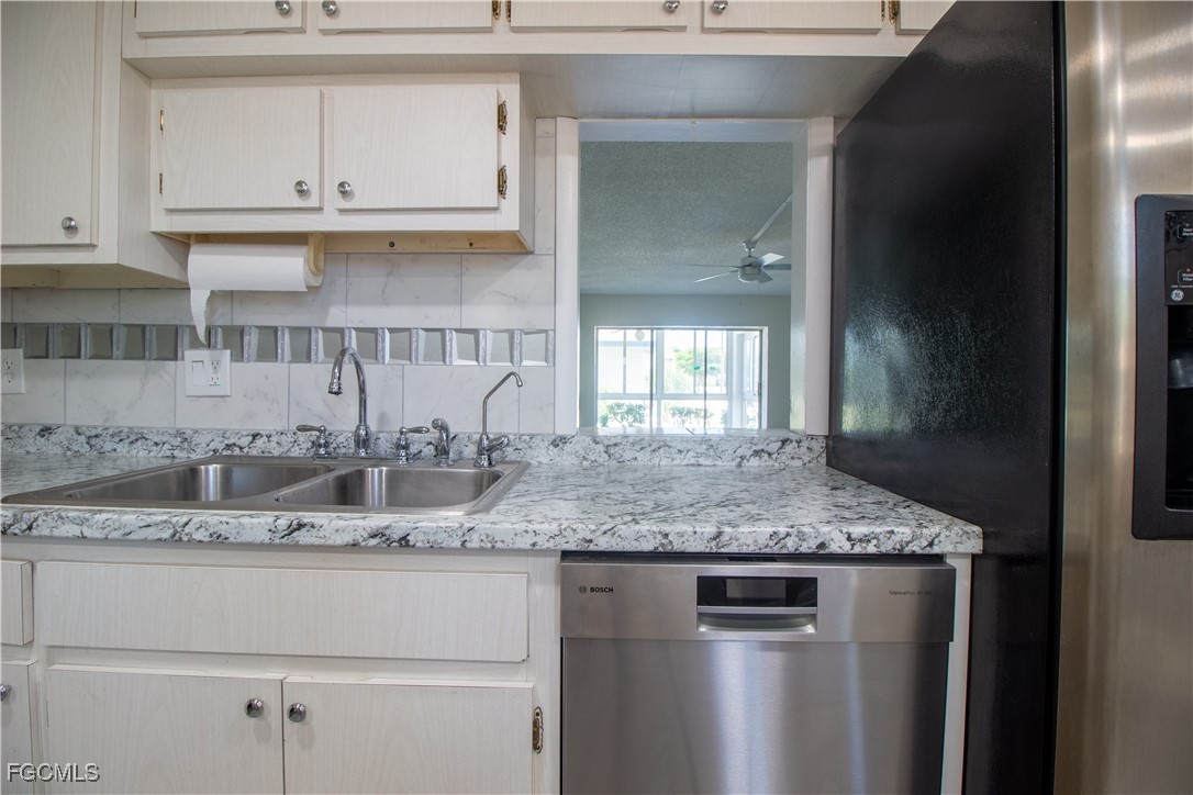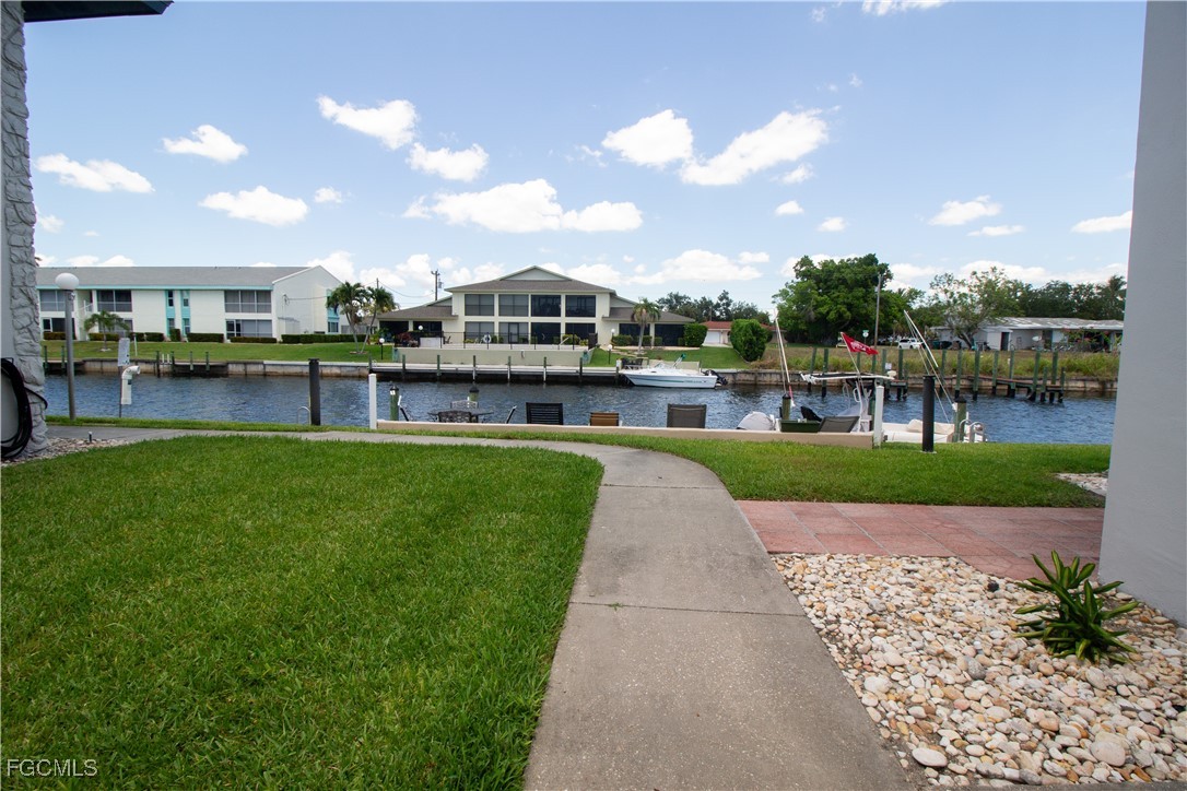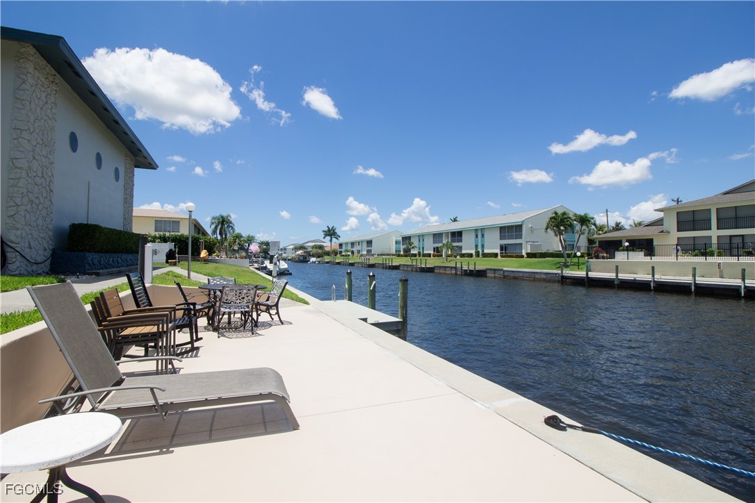 Looking for a spacious property. This two-bedroom, two-bath unit has a bright & open layout with plenty of storage space and brand new laminate flooring in the living and kitchen! The screened-in lanai is the perfect spot to soak up the Florida sunshine and enjoy the outdoors in comfort and style. Located in the desirable 55+ Cape Colony Condos community, this property offers access to a gulf access canal and community boat dock, making it ideal for those who love to spend time on the water. Plus, with its proximity to Cape Coral's entertainment district and easy access to the Caloosahatchee River, you'll never be far from all the fun and excitement. The courtyard of the complex features a heated pool and shuffleboard, and the concrete dock provides the perfect spot to relax, fish, and socialize with neighbors. And with assigned carport parking just steps from your front door, you'll never have to worry about finding a spot. Don't miss out on the opportunity to make this property your own.
