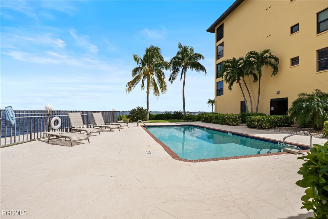 2 bedrooms, 2 bathroom condo with exceptional view of the Caloosahatchee River! This condo includes a spacious dining room, living room with a gorgeous view, kitchen, washer and dryer, Primary suite with ample closet space and guest bedroom. Windows and the lanai have roll down storm shutters. The community swimming pool is heated and is waiting for your arrival. Easy to show on short notice. There is an HOA application and fee involved. No Pets allowed