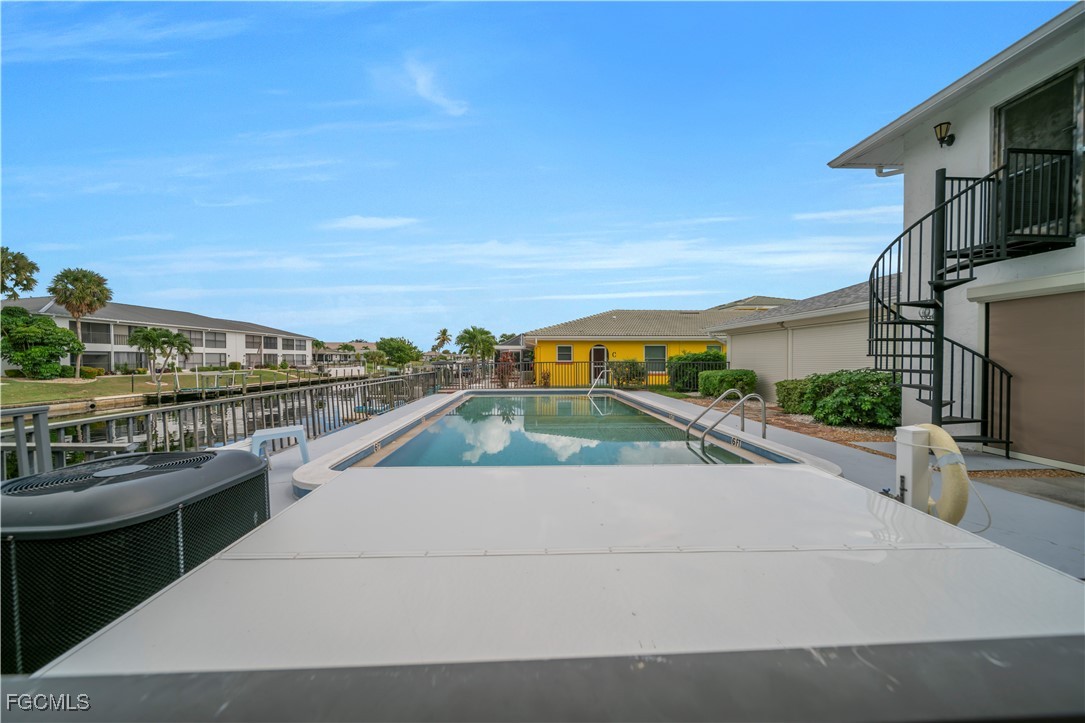 The primary bedroom includes a large walk-in closet, and the guest bedroom offers plenty of comfort and space. From your front balcony, enjoy the canal view, and from the 35-foot screened lanai, take in stunning views of both the pool and canal — with your own private staircase leading directly to the community pool.