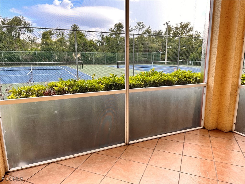 This first-floor condo in Tuscany Gardens offers a prime location near shopping, dining, and quick access to I-75 and Tamiami Trail. The home features tile flooring throughout the main areas with wood laminate in the bedrooms. The open kitchen flows into the living space and overlooks a screened lanai, perfect for relaxing. The screened lanai overlooks tennis court. A washer and dryer are included inside the unit, along with a small outdoor storage closet. Rent covers water, plus access to community amenities including the pool, spa, fitness center, and tennis courts.