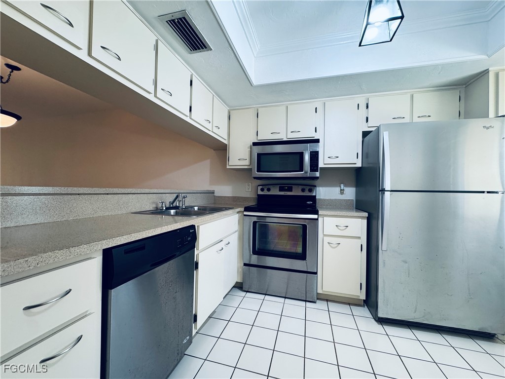 The kitchen is fully equipped with stainless steel appliances, including a refrigerator, range, microwave, and dishwasher. Light cabinetry and ample counter space make it easy to prepare and enjoy meals at home. Both bedrooms are well-sized, each with its own walk-in closet and ceiling fan for added comfort. The bathrooms are nicely maintained, featuring updated lighting, tile floors, and a mix of walk-in shower and tub options.
