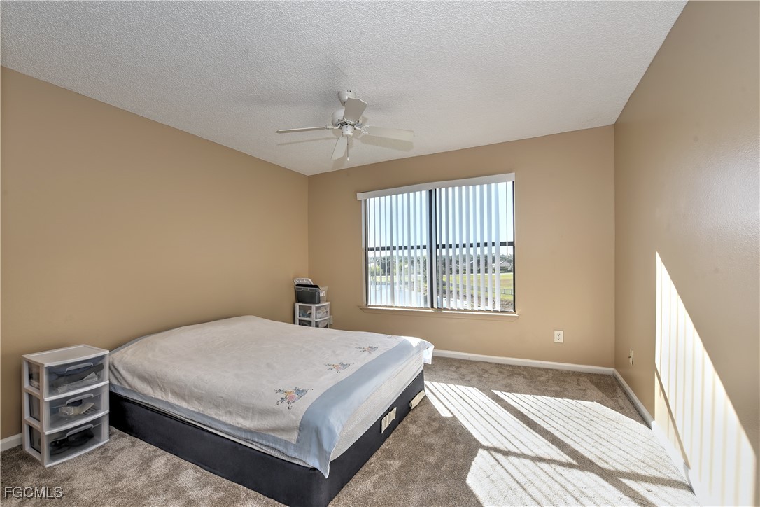 Spacious third-floor condo with 2 bedrooms, 2 baths, and a garage in a quiet section of the community. Vaulted ceilings create a bright and open feel. The split bedroom floor plan offers privacy and comfort, and the bedrooms are generously sized. Relax in the screened lanai with a serene lake view. Features include a newer water heater, carpet, A/C, granite countertops, and storm shutters over the lanai sliders. Conveniently located near the Daniel's Parkway corridor, with Whole Foods, Publix, Bell Tower Shops, dining, theaters, the international airport, FGCU, baseball stadiums, schools, parks, and more just a short drive away. Note: No elevators in the complex. Available for lease starting November 1, 2025.