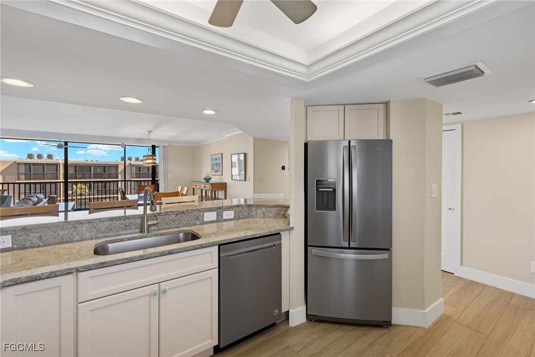 This lovely top floor condo is beautifully updated and is well appointed with coastal decor, making it a perfect island vacation destination. Ideally located in the building closest to the main amenities of the fabulous Sundial Resort, it is perfect for enjoying the resort's vibrant atmosphere and luxurious amenities but separate for quiet evenings and restful stays. With three bedrooms that include two king beds and two full beds, there is room for all of your guests. New in-unit washer and dryer and the assigned under building parking and private exterior storage closet offer excellent convenience. New carpet in bedrooms. The spacious screened lanai creates added living space overlooking the Gulf of Mexico and beautifully landscaped courtyard pond and gardens. All windows and sliders are impact-rated. With a dedicated pool and beach boardwalk, the building is a vacation destination all to itself! On-site restaurants and market offer great convenience and contribute to the incredible resort experience. As part of the Sundial rental program, owners and their guests and renters have access to the extensive Sundial Resort amenities that include pool, spa, cabanas, beach chairs, fitness center, tennis, pickle ball and more! At Sundial L402, an amazing Sanibel vacation is yours to enjoy today!