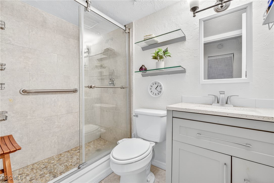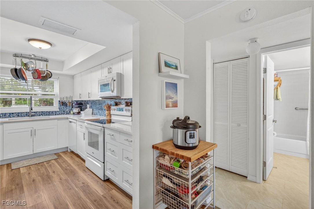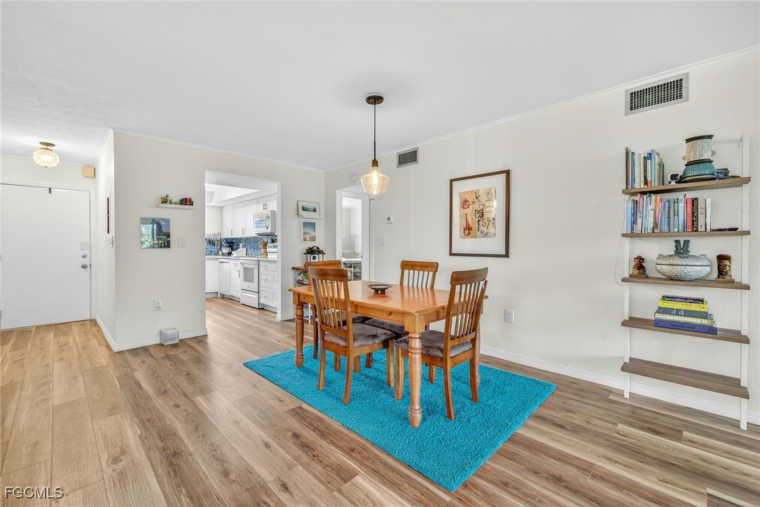 This two bedroom, two bathroom condo has just about new everything: new Kitchen - and it is gorgeous! New Quartz countertops, new cabinetry, tasteful designer backsplash, enlarged entry into Kitchen - just a great place to cook your meals! Opens into the spacious Dining/Living Room - all with new LVP (that's LUXURY Vinyl Plank, folks Very nice looking!) wood flooring! Freshly painted throughout, new impact resistant doors and sliders leading out to your charming screened-in porch that overlooks peaceful landscaping and your community pool! All new custom-made blinds. Elevated newer HVAC unit was installed in 2023, along with upgraded, larger water heater for those long hot showers. Your reserved parking space is literally right out your front door, and this building has loads of extra guest parking - so go ahead and throw that party! Did I say End Unit on the First Floor?! Peace and quiet galore find you in this unit, which has been lovingly maintained by the current owner. She is ready to start her new life, so we've priced this one to sell quickly! Come take a peek before someone else scoops this on up for their own!