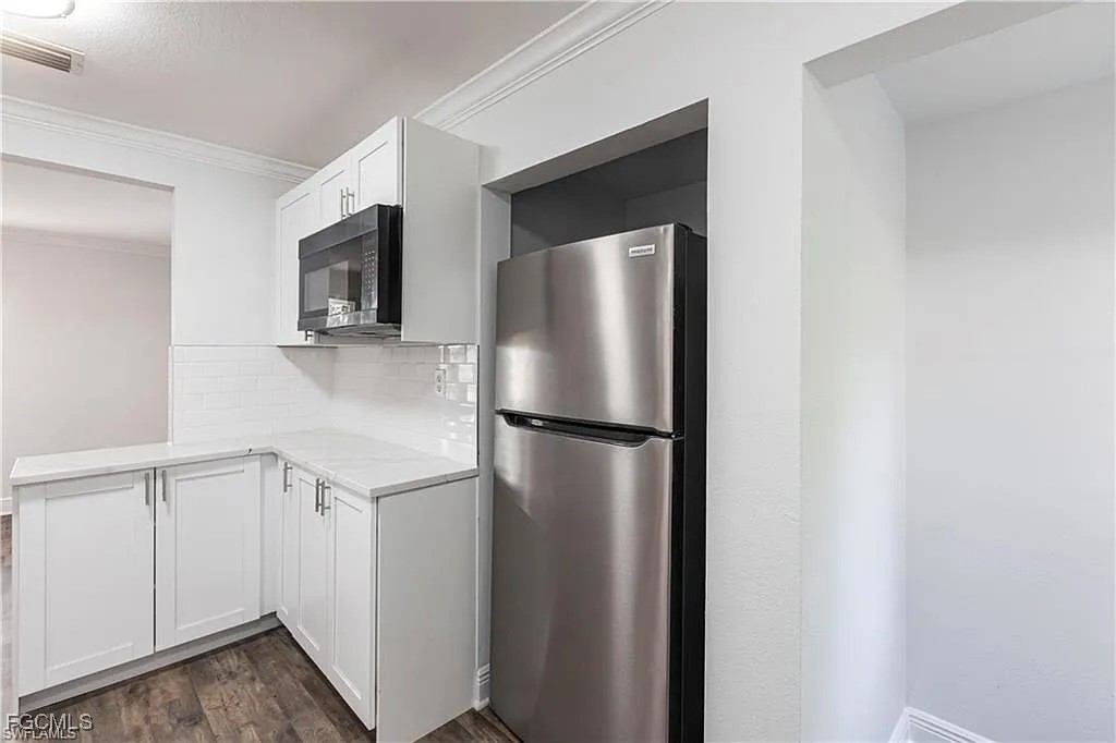 Step inside to discover an open-concept floor plan filled with natural light. The spacious living area features brand-new flooring, recessed lighting, and fresh interior paint that enhances the home’s bright, airy feel. The heart of the home—the kitchen—has been fully upgraded with sleek quartz countertops, custom cabinetry, stainless steel appliances, and a tasteful tile backsplash, making it as functional as it is beautiful.
