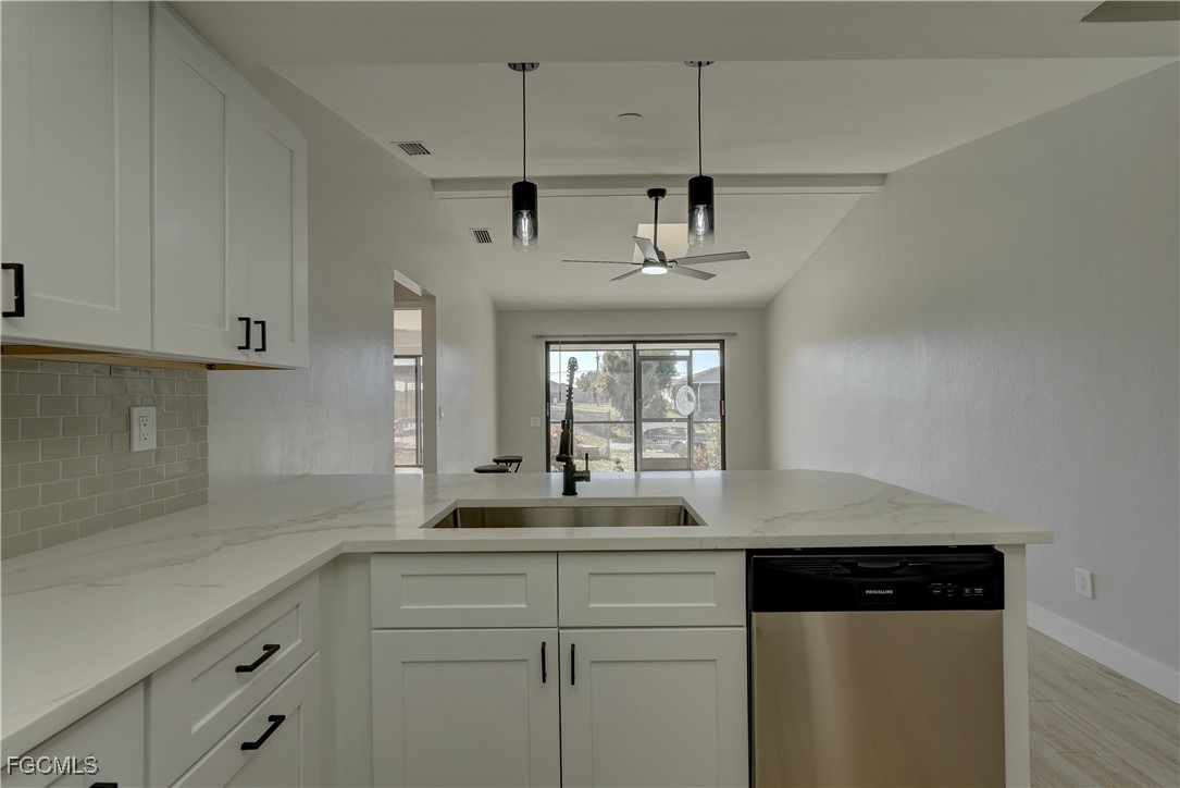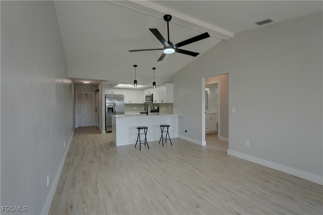 Prepare to be Impressed!!! Gulf Access Waterfront with Pool and under $190,000. Newly updated with matching Tile throughout, even the lanai. New solid wood kitchen cabinets w/soft close doors and drawers and trash pullout, Quartz counters, new stainless appliances, bathrooms w/matching quartz counters and new solid wood vanities, tile showers w/glass doors, new Faucets, new switches and outlets in all rooms. Modern stack washer & dryer enclosed with barn style sliding door. Cathedral ceiling with skylight in living room. New lights and ceiling fans throughout. Newly painted with new modern baseboards. Nautique Condo Association is professional managed and did not flood in past Hurricanes. Lawn service, pool service, water, sewer and internet included in HOA. If you are looking for a great location and nice place to live this is for you.