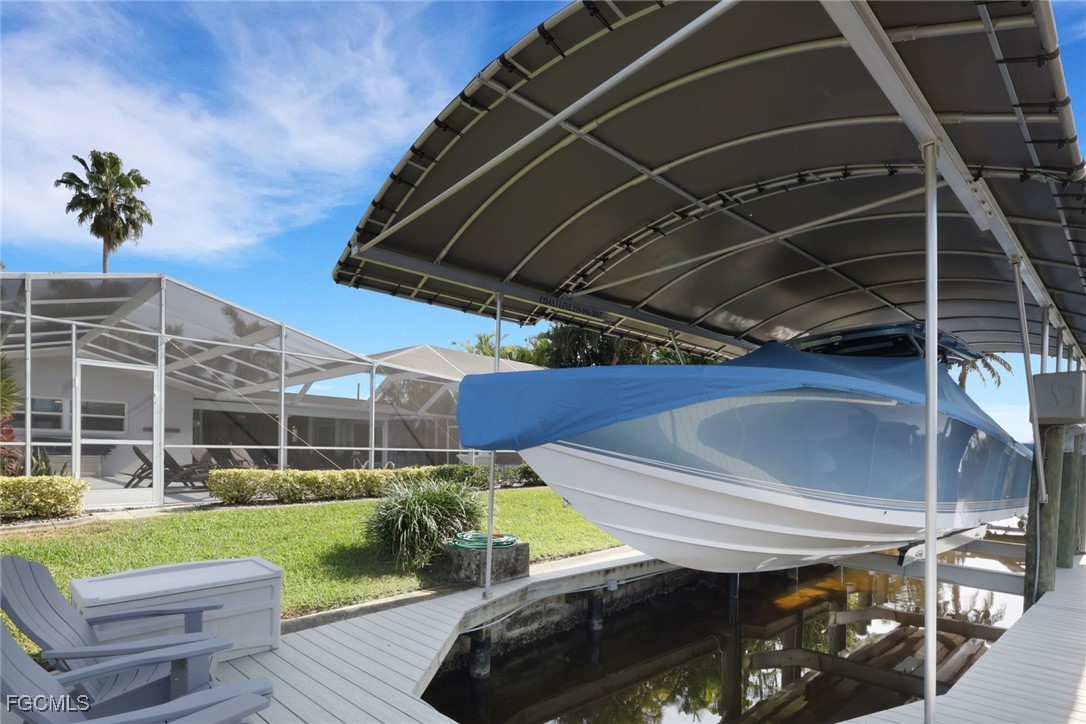This beautifully updated single-family ranch offers direct Gulf access and an exceptional list of recent upgrades. Featuring 3 bedrooms and 2 bathrooms, the warm, inviting split-bedroom floor plan provides ideal comfort and privacy. Throughout the home, you’ll find durable and stylish vinyl plank tile flooring that enhances the modern, move-in-ready feel. The functional living and dining areas flow seamlessly together, creating a versatile space perfect for everyday living or entertaining. The home is fully updated, and the outdoor kitchen adds an impressive bonus for those who love to enjoy the Florida lifestyle. Outside, the beautiful tree lined lot offers endless potential for outdoor living, while the large pool and pool deck area are supported by major improvements including a 2024 pool heater and a brand-new pool pump installed just two weeks ago. Boaters will appreciate the direct Gulf access, and the new dock, 20,000 lb boat lift and canopy installed in 2024. A new storm surge and flood protection system provides peace of mind, and the major mechanicals are in excellent condition with a 2022 roof and a 2024 A/C system. With its classic Florida-style design, attached garage, and extensive upgrades, this property offers both charm and long-term value. Whether you're a first-time buyer, an investor seeking an opportunity, or looking for your new direct gulf access retreat, this home is ready to enjoy from day one.
