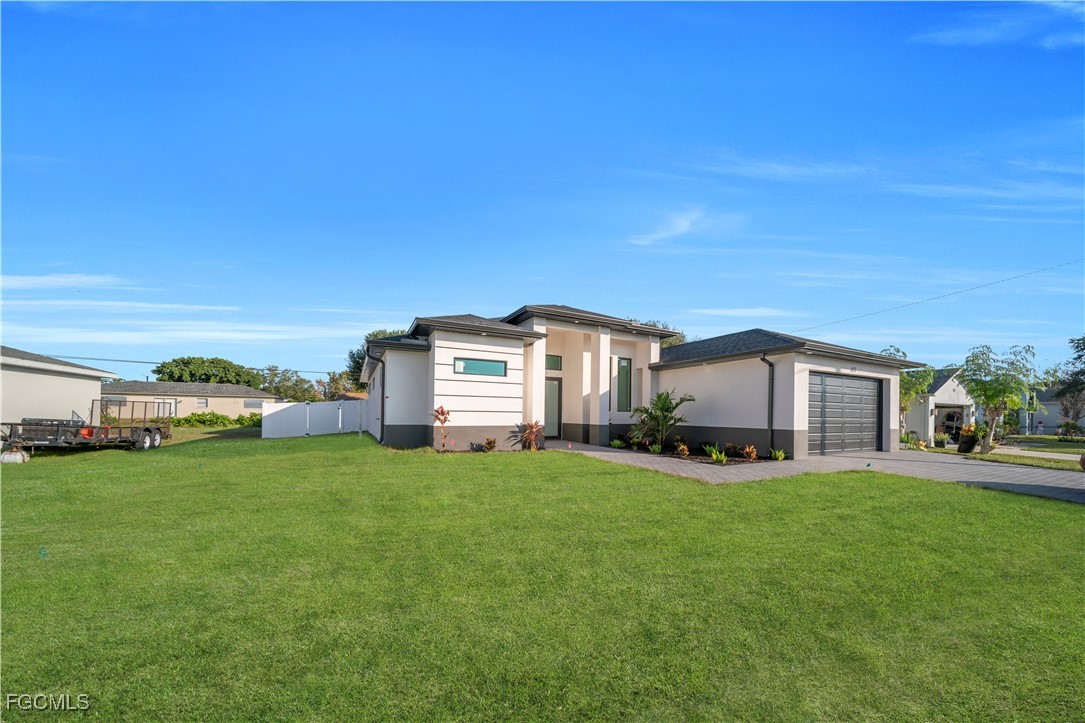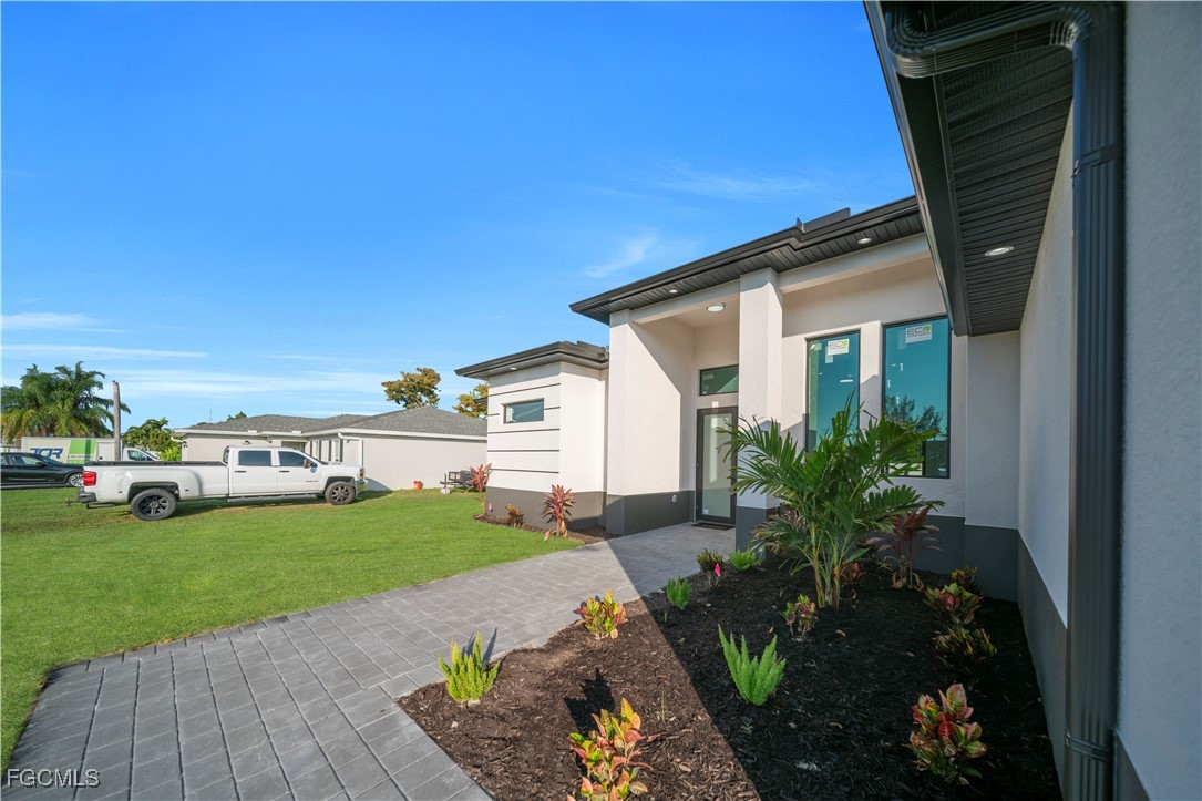 Beautiful NEW CONSTRUCTION home located in a highly desirable and prime area of Cape Coral! Close to shopping centers, schools, grocery stores, restaurants, and more. This property features city water with ALL assessments paid in full and is situated in a NO FLOOD ZONE, offering peace of mind with no hurricane or flood insurance requirements.