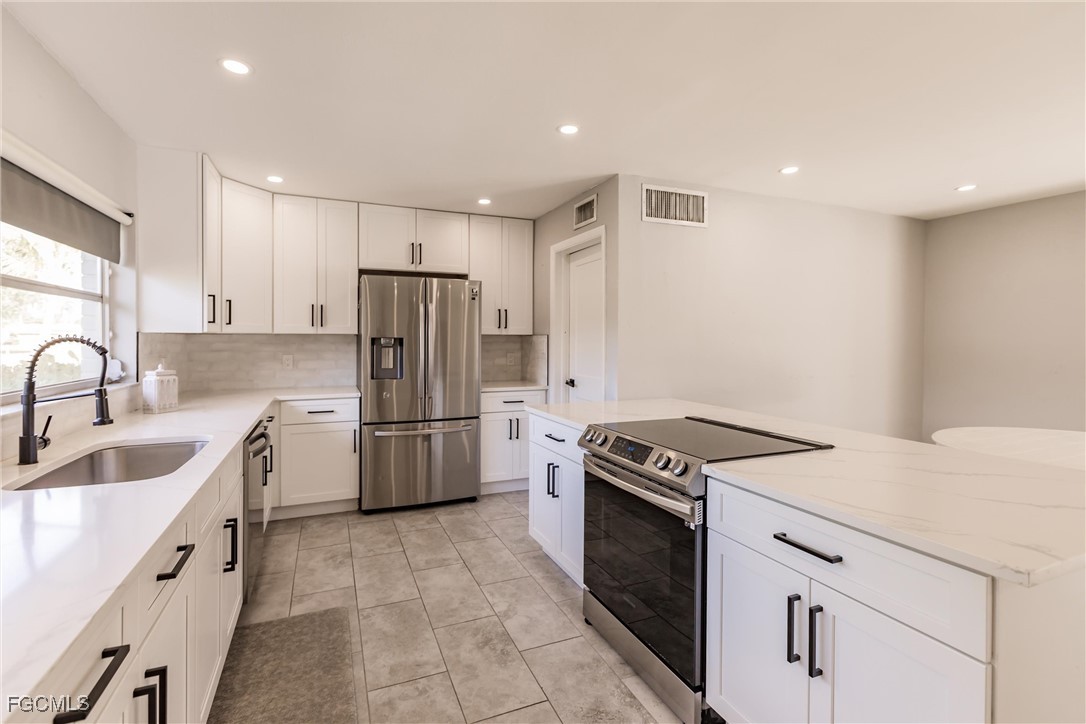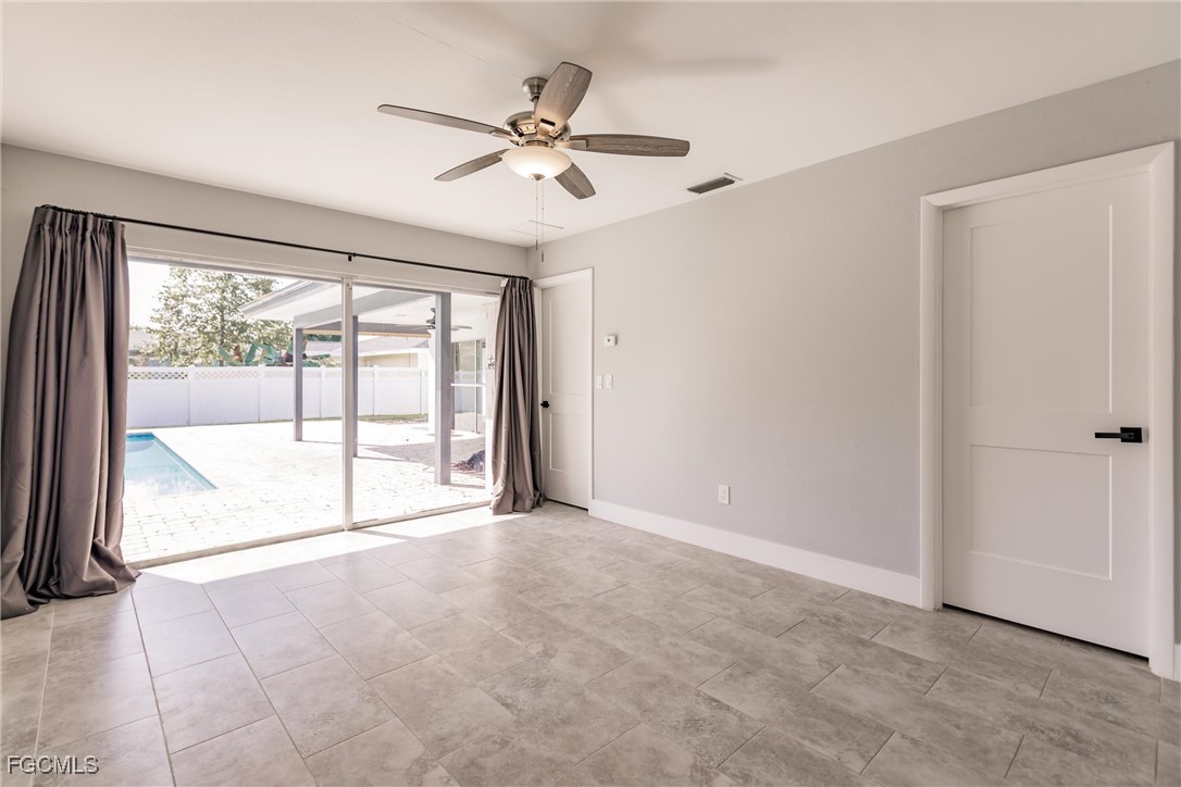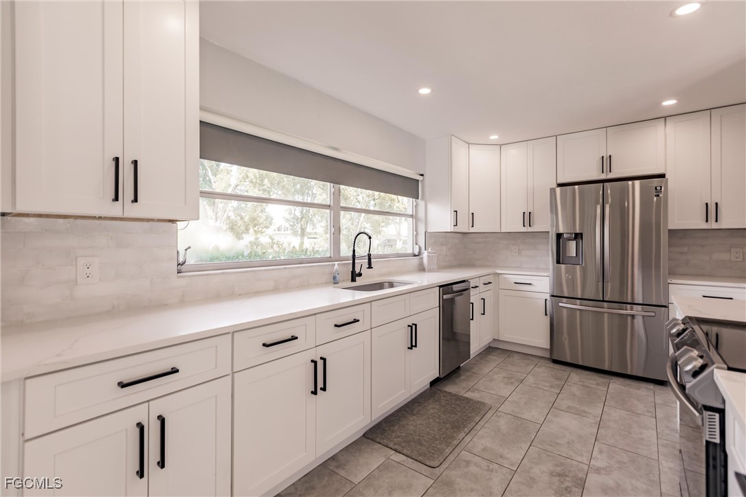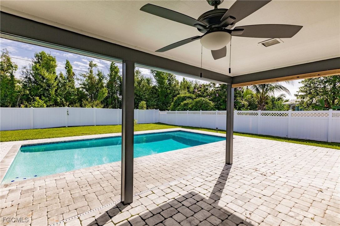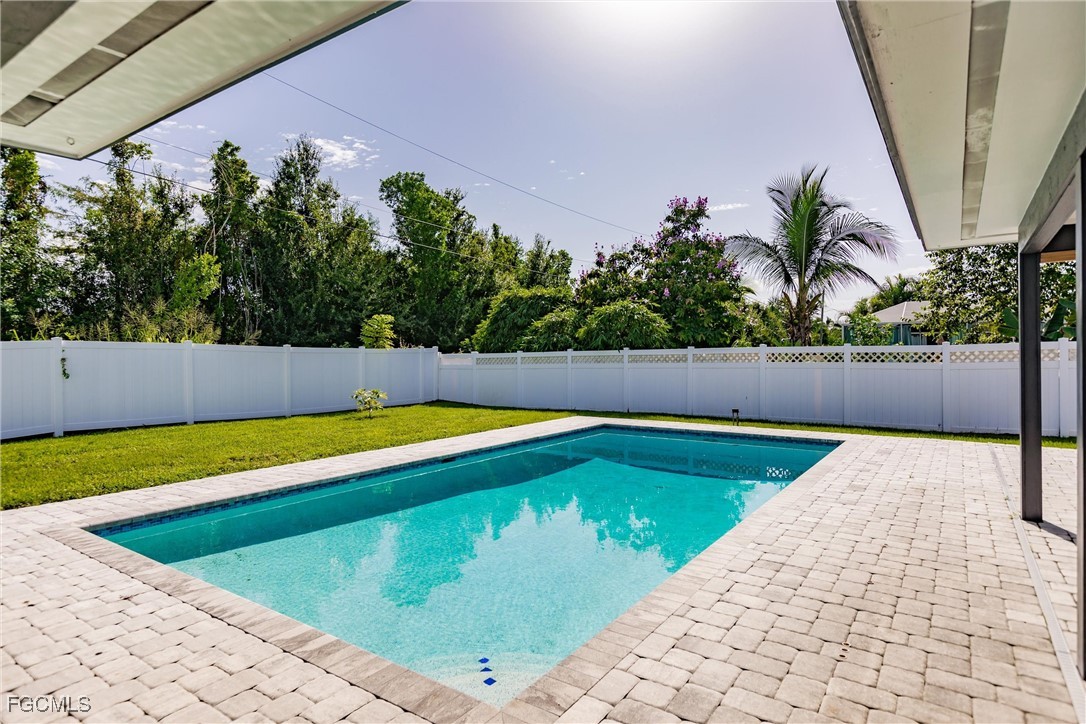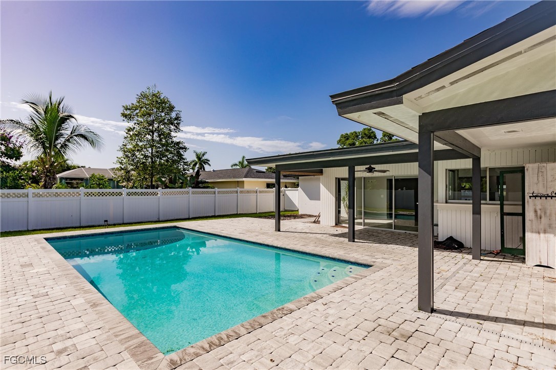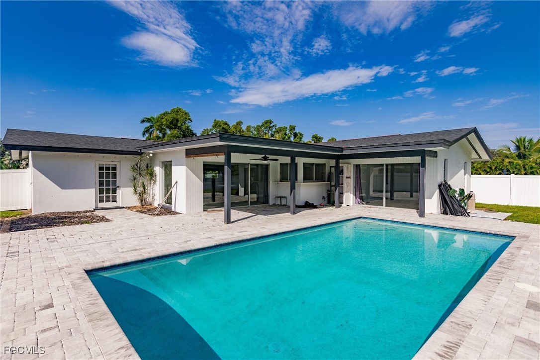 Welcome to your forever home—a beautifully renovated 3-bedroom, 3-bath gem that perfectly blends modern luxury with comfortable living. This stunning property boasts an open floor plan that invites natural light to pour in from every angle, tile flooring that flows seamlessly throughout the entire home, gourmet kitchen, complete with high-end appliances, sleek countertops, and ample cabinetry, master bathroom featuring a stand-alone soaking tub, separate glass-enclosed shower, and custom walk-in closet shelving, two new AC units and updated ducts (2024), refinished pool (2021), large yard, new shelving and cabinets in garage, and new laundry room. Situated on a generous 0.26-acre lot in a peaceful neighborhood, this home perfectly blends modern upgrades with classic Southwest Florida charm. With no HOA, this property offers freedom and flexibility — all within easy reach of shopping, dining, parks, and major roadways.