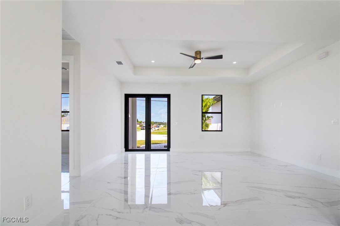 Uncover the allure of "Moon", a New Construction in Cape Coral, Florida. This modern masterpiece features 3beds, 2baths, & 1,387 sqft of luxury. The spacious master suite includes walk-in closets & dual-sink master bath. Inside, enjoy elegance with low-maintenance large-format tile floors & high ceilings that amplify space. The open kitchen seamlessly connects to the living & dining areas, perfect for hosting or everyday living. The 227 sq ft lanai, an outdoor oasis for morning coffees or unwinding. The 2-car garage boasts durable epoxy floors.