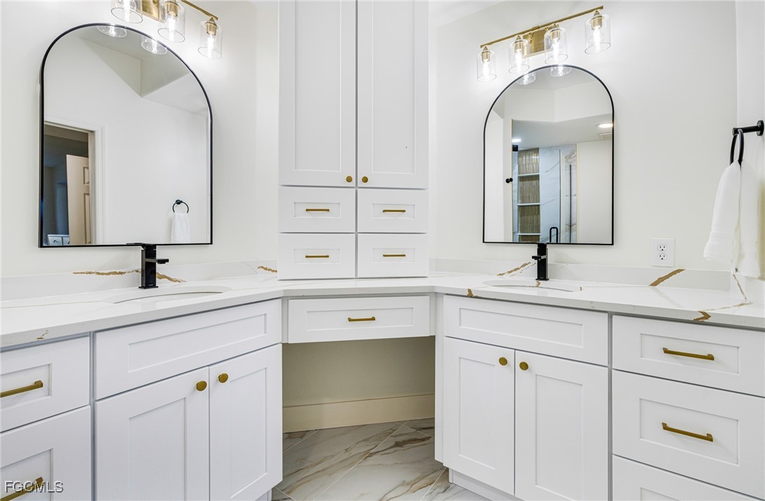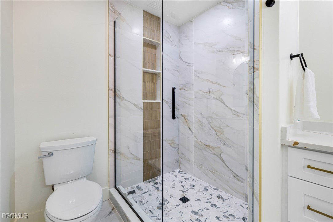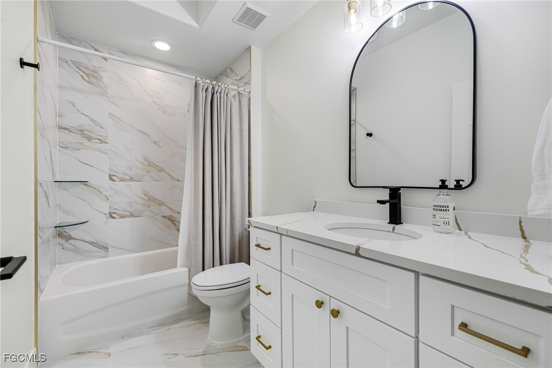 The redesigned kitchen serves as the centerpiece of the home, featuring quartz countertops with a full backsplash, modern cabinetry, and high-quality finishes. Luxury vinyl flooring runs throughout, combining durability with a clean, contemporary look. The owner’s suite offers a comfortable retreat with a beautifully updated, spa-inspired bath.