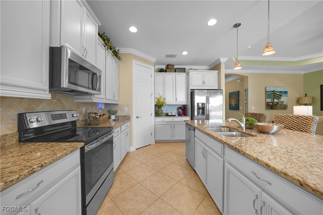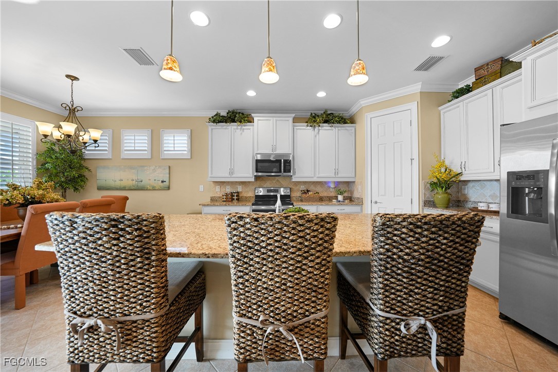 An extraordinary, never-lived-in Ashbury model offering FULL TURNKEY LUXURY and an exceptional Florida lifestyle. Adding to the home’s allure is the fully furnished, turnkey opportunity which may also include a top-of-the-line GOLF CART and this MERCEDES CONVERTIBLE, perfectly curated to enhance effortless Florida living from day one. Ideally positioned on a tranquil LAKEFRONT with a sought-after south-southeast exposure,this residence features 3 bedrooms, 3.5 bathrooms, a formal dining room, private study, and a 2-car garage, all presented in pristine, model-home condition. The home was used exclusively for national television commercial productions for brands requiring the highest level of finish and presentation. Designed with upgrades you would choose yourself, the chef’s kitchen showcases stainless steel appliances, 42-inch cabinetry with crown molding and under-cabinet lighting, and granite countertops, while the main living areas feature tile flooring laid on the diagonal, 10-foot ceilings with elegant cove molding, 8-foot interior doors, and oversized 5¼-inch baseboards. Custom decorator paint and upgraded high-hat lighting enhance the home’s warm, refined aesthetic throughout. The private study is highlighted by custom French glass doors that could also be used as a formal dining space, ideal for working from home, while the primary suite offers a true retreat with California closets and upgraded bath finishes, including thick custom shower glass. Additional bedrooms provide generous space and privacy for family or guests. This home has been meticulously maintained and thoughtfully upgraded, including a brand-new 4-ton air conditioning system, premium poplar plantation shutters, epoxy-finished garage floor, best-in-class washer and dryer, custom ceiling fans with full-function wall controls, built-in sliding screen door, upgraded baths and fixtures, and professionally established premium landscaping. The property has been hurricane tested, sustaining no damage from Irma or Ian, with landscaping fully replaced and enhanced. Residents enjoy living within walking distance to a stunning clubhouse offering a beautiful gathering room with a full kitchen and large video screen, fitness center, aerobics studio, and billiards. Outdoor amenities include a resort-style swimming pool and spa, tennis courts, basketball court, and playground, all within a secure, gated community designed for an active and social lifestyle. Perfectly located just MINUTES FROM THE DOWNTOWN RIVER DISTRICT, this home offers convenient access to award-winning restaurants, shopping, hospitals, entertainment, and cultural attractions, making it an ideal blend of luxury, lifestyle, and location. A rare gem for the discerning buyer seeking turnkey elegance, premium upgrades, and the very best of Southwest Florida living.