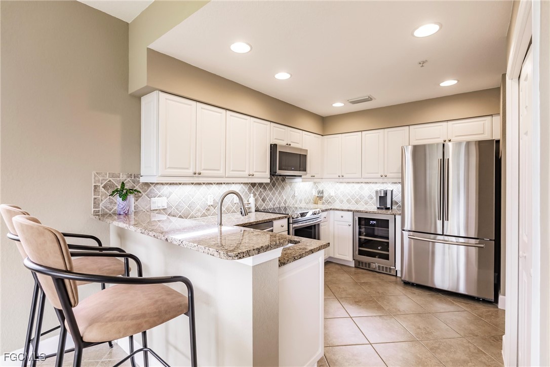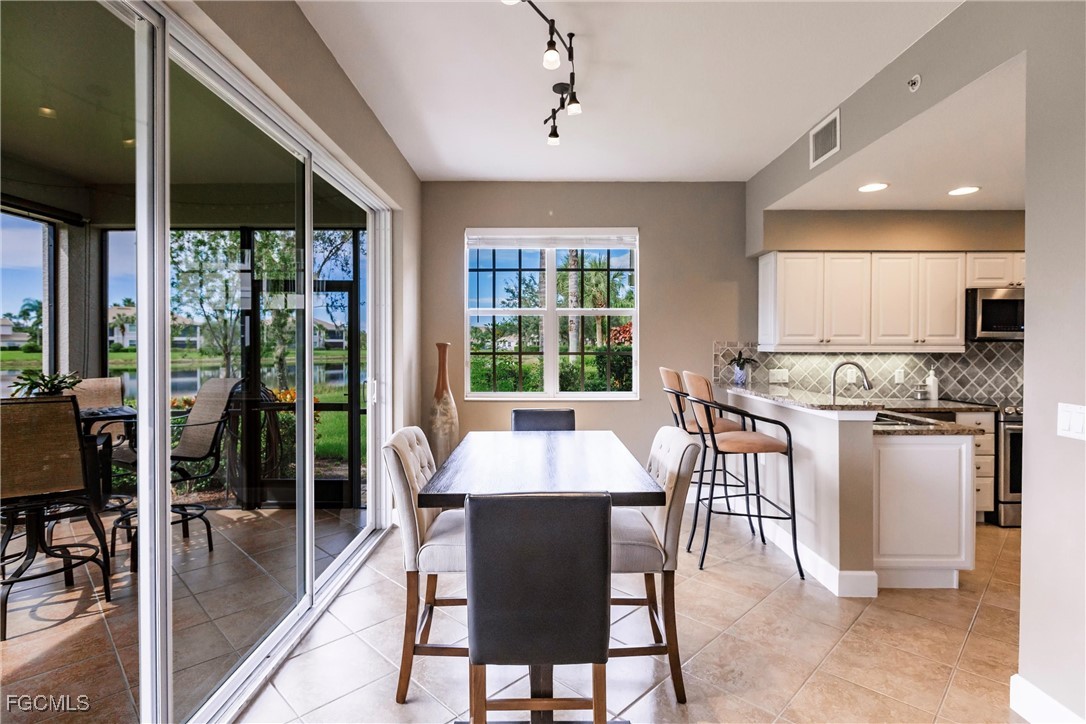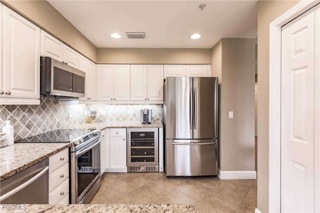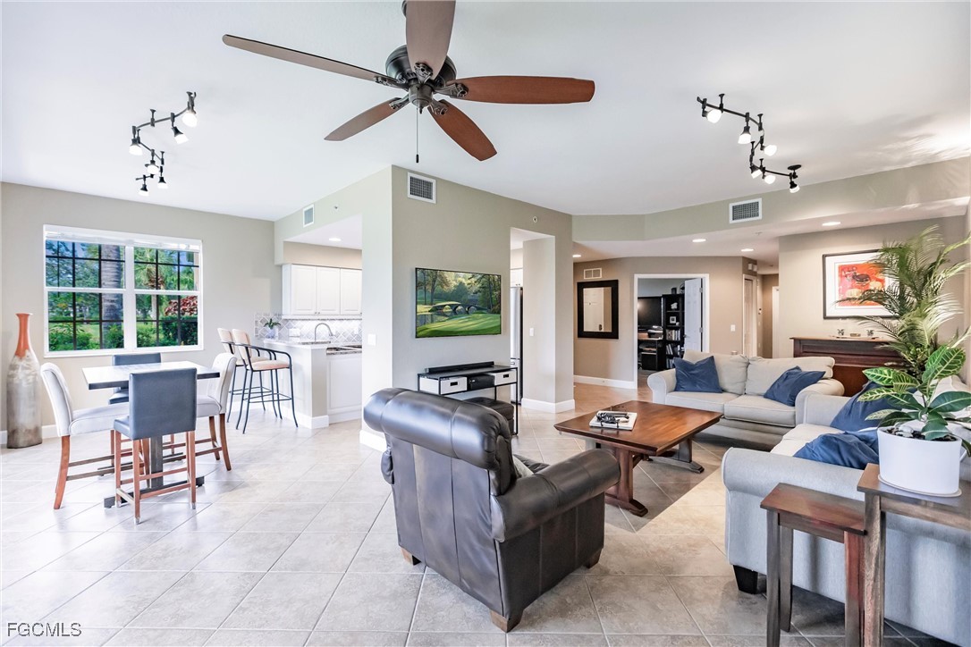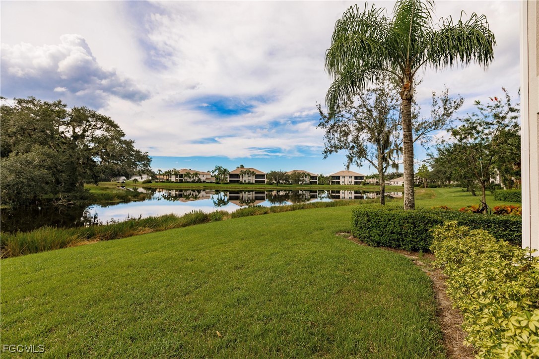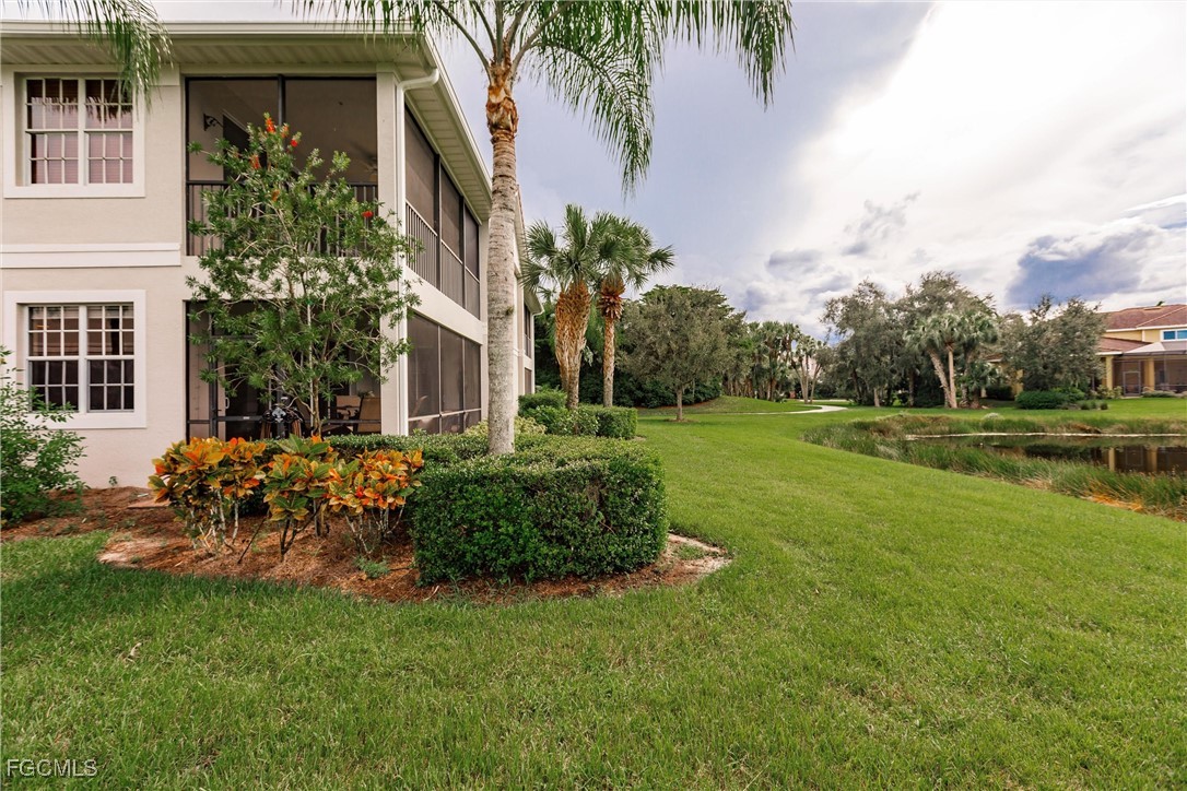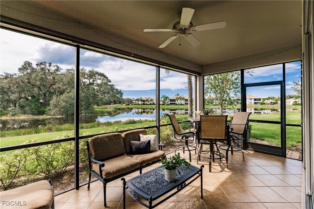 Discover this stunning first-floor coach home offering spectacular western lake views—perfect for enjoying unforgettable sunsets. Located in the gated Verandah community, this beautifully updated residence boasts 1,532 sq. ft. of living space with 2 bedrooms, a den, 2 baths, and a 2-car garage. The sellers have meticulously renovated the home, including updated kitchen and bathrooms, newer appliances, a Trane high-efficiency HVAC system, fresh interior paint, upgraded hardware, enhanced lighting and ceiling fans, updated outlets and switches, a 50-gallon water heater, dual-zone wine fridge, custom pantry shelving, and new no-see-um screens on the lanai. The association has also improved the property with new exterior paint, roofs, a fire alarm system, upgraded landscaping, and fiber-optic internet through Comcast. Inside, a spacious foyer leads to a versatile den with double doors. The open family room showcases serene lake and golf course views, complemented by diagonal tile flooring throughout. The kitchen features granite countertops, white cabinetry with lighting, a stylish backsplash, newer appliances, and a generous pantry. The master suite includes lanai access, plantation shutters, abundant natural light, a large closet, and an updated bath with dual sinks, a separate shower, and a soaking tub. The guest bath has also been upgraded with a walk-in shower and granite counters. The laundry room offers added convenience with a sink, cabinets, and full-size washer and dryer. The fully tiled lanai provides a peaceful retreat overlooking the lake and golf course. Located in a cul-de-sac near the walking trail and dog station, this home sits in Pebblebrook, a Verandah neighborhood featuring its own pool, fitness center, and community room. The community has new roofs, fresh exterior paint, and sustained no storm damage. As a Verandah club member, you’ll enjoy two championship golf courses, tennis, pickleball, a fitness center, bocce, kayaking, 9 miles of walking and biking trails, a dog park, playground, multiple restaurants, and a robust activity calendar. This move-in-ready home is your chance to enjoy exceptional views and resort-style living in Verandah. Don’t miss it!