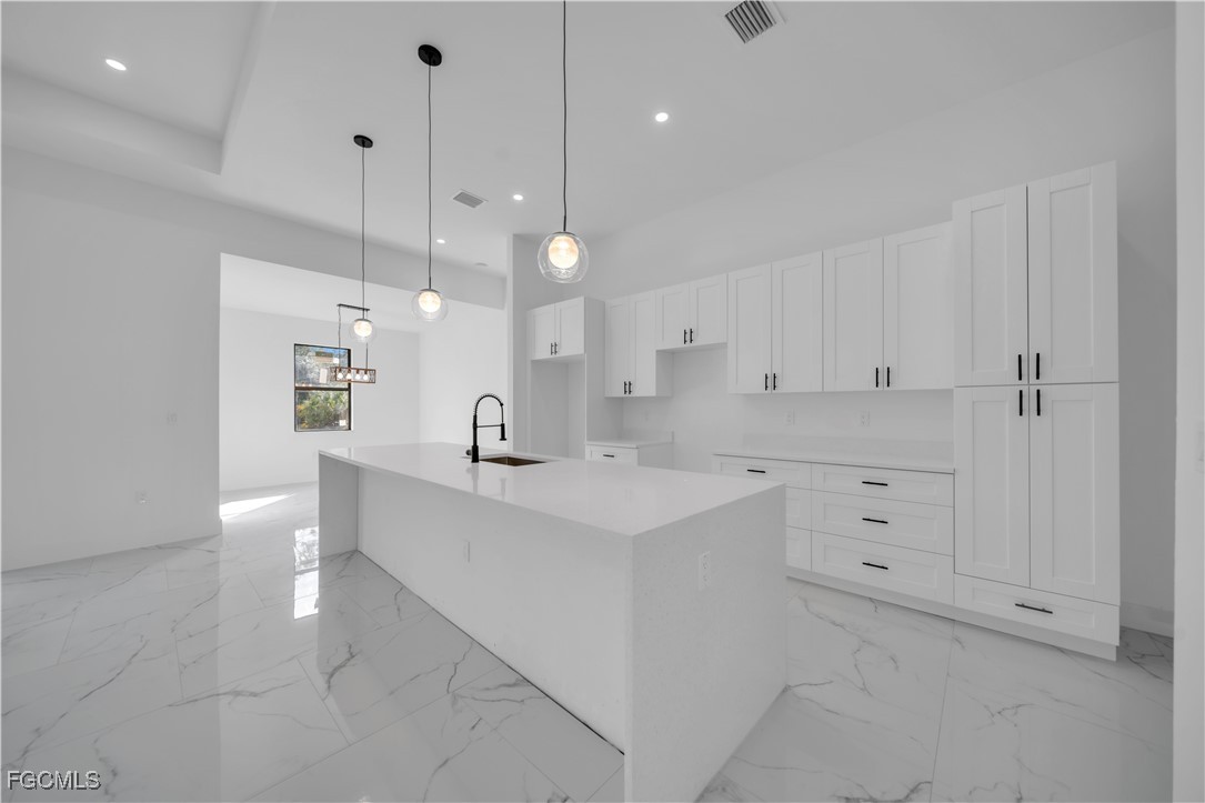 Brand-new single-family residence completed in 2025, thoughtfully designed to meet both family living and investment potential. The home offers three bedrooms, plus Den and two baths, a two-car garage, and high tray ceilings that create a bright and open atmosphere. All closets are fully built out, providing excellent storage and organization for growing households. The primary suite features a well-appointed bathroom with separate shower and private restroom, offering added comfort and privacy. The modern kitchen showcases a quartz countertop island, stainless steel appliances, and an open-concept layout well suited for everyday living and entertaining. Tile flooring throughout the home ensures durability and low maintenance, while hurricane-impact windows and doors add long-term value, safety, and insurance advantages. Move-in ready, this property presents a strong opportunity for primary residence, multi-generational living, or long-term investment.