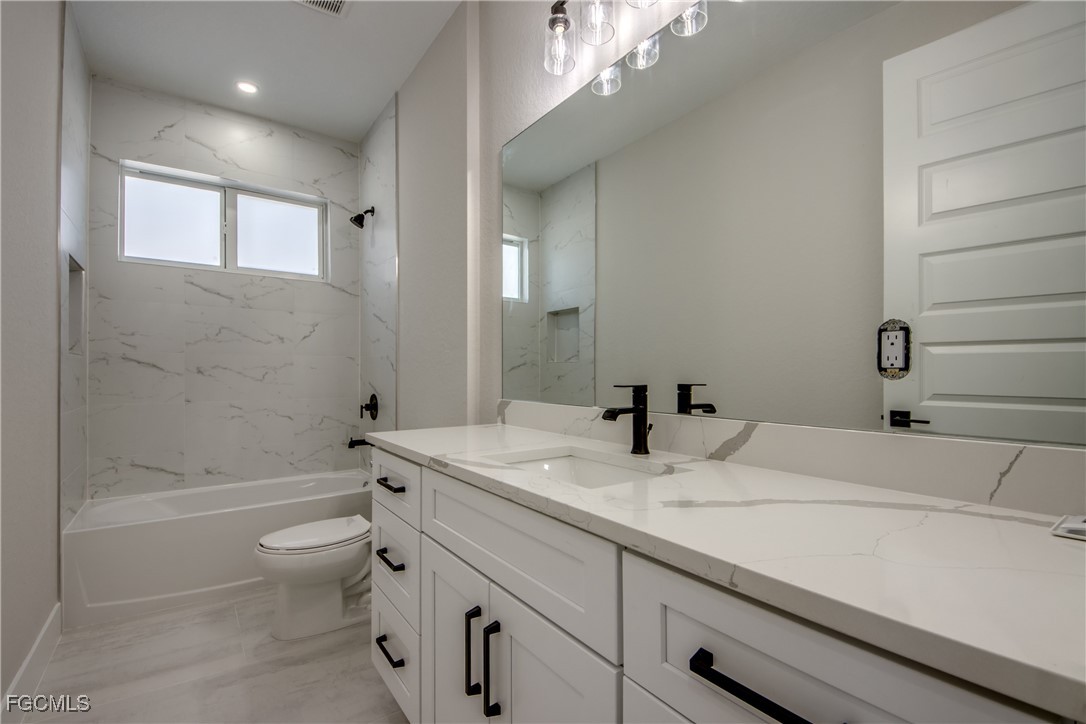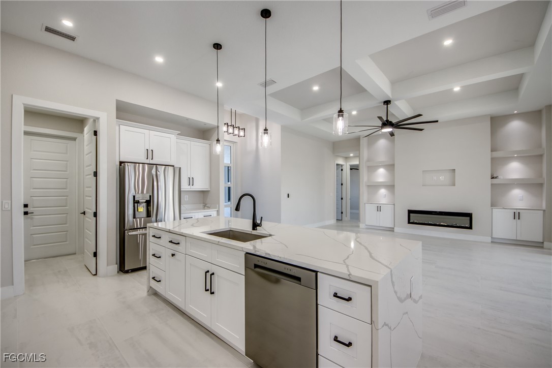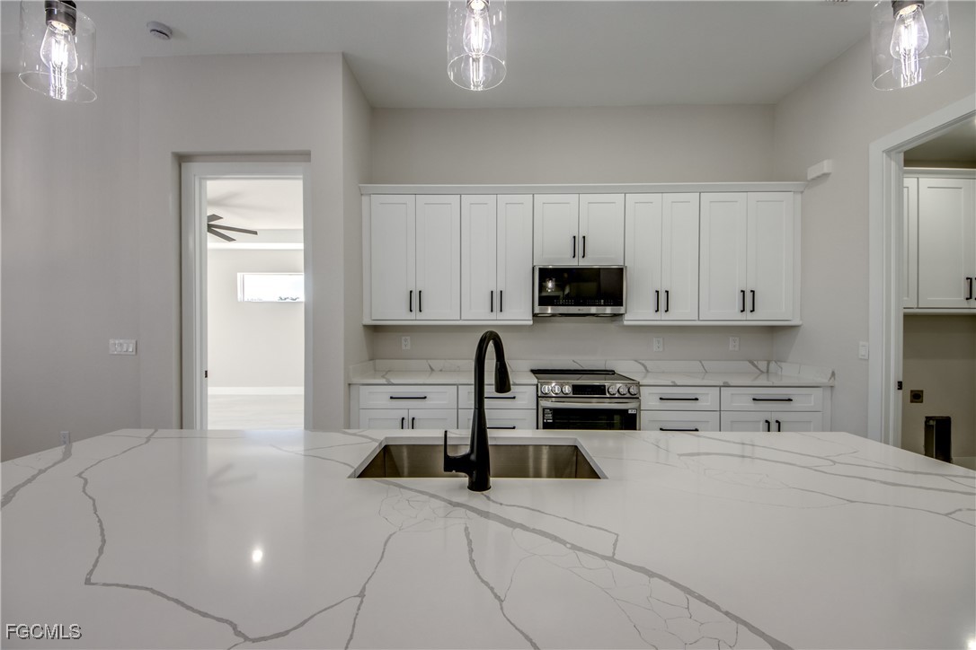 NEW CONSTRUCTION - JUST FINISHED! This Southern Exposure 4 Bedroom, 3 Bath, 3 Car Garage home comes with all the Bells and Whistles. Home is 2,197 sq ft under air with a total of 4,555 sq ft when you include your 1,634 sq ft lanai with an oversized pool and Full Length Lanai! This builder doesn't cheap out like the others and provides an actual Screen Enclosure with Concrete Footings - Over a $35K value! The Kitchen has been decked out with 42" All Wood Cabinets, Stainless Steel Appliances, Quartz Countertops with Waterfall edge, and a huge Kitchen Island. Designer tile flooring installed throughout the home including the bedrooms. This home has Impact Windows and Sliders, a 10' High Glass Front Door, a Slider out the master bedroom, Huge Circle Paver driveway, Paver pool deck, complete landscape package with sprinkler system and flora tan sod. The interior specs are High Ceilings in living area, 8' doors, 5 1/4" Baseboard with 3 1/4" Casings, Soffit lighting outside, Frameless Glass Shower Enclosure, Custom features, Trey Ceilings in the living room, Dining room and master bedroom, pendant lighting in the kitchen, pool bath and so much more. This home is located in an area where city water and sewer area already installed and comes with a 1 year builder warranty. Call today to discuss the possibility of having no flood insurance on this property as well!