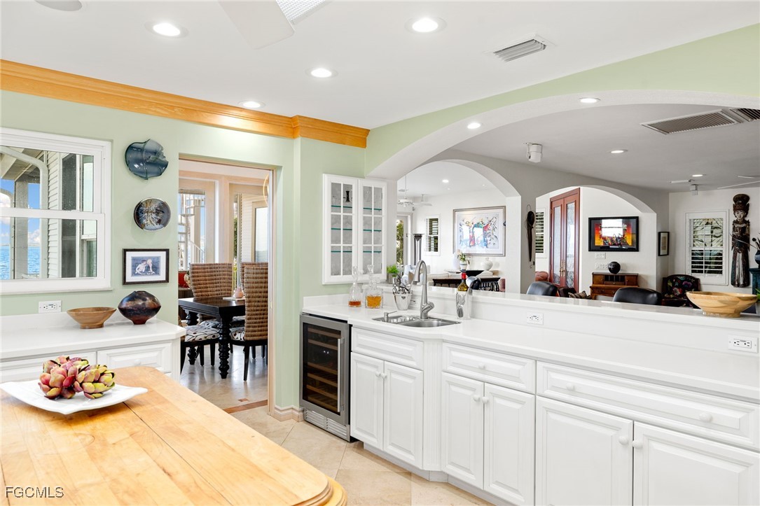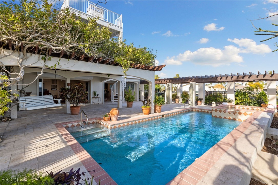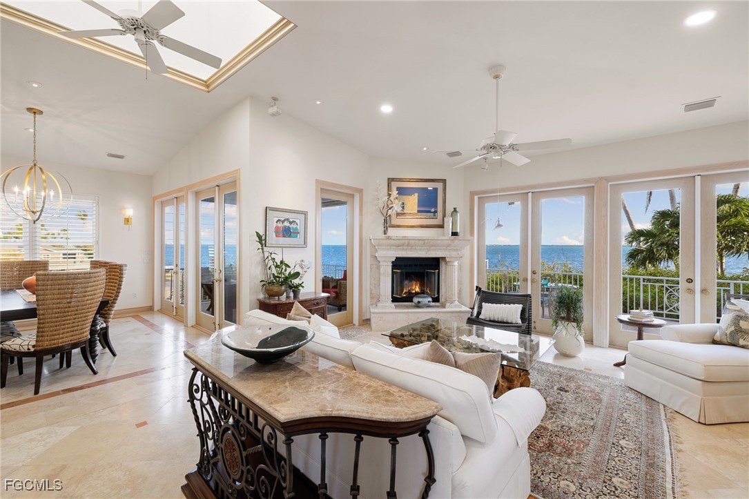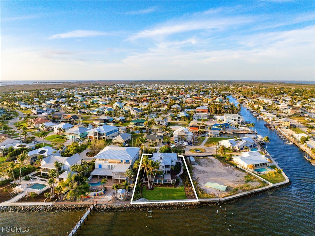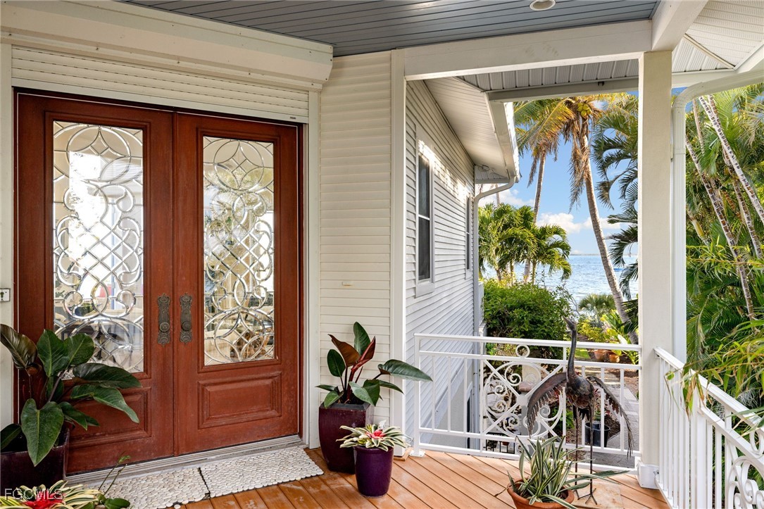 With unobstructed views of the bay, perfectly framed by the tropical landscape, this residence embodies the essence of waterfront living. Upon entering the main level, you will be greeted by an abundance of natural light and vistas complimenting the fireplace in a harmonious blend of coastal and classic design. Entertain family and friends in the formal dining area or the main level balconies overlooking your backyard as dolphins swim in the background. The kitchen boasts views of the bay and offers plenty of cabinet and counterspace, a gas range and a wet bar that connects the kitchen to the family room. The primary quarters offer two walk in closets and a spacious bedroom surrounded by mature landscaping that integrates with the natural beauty of the surroundings. The well appointed guest bedrooms, one on the main level and the other on the first floor, award your guests with privacy. On the first floor you'll find a separate sitting room, a den (which the owners used as an exercise room) and a laundry room with an extra refrigerator and sink. From the office and recreation rooms you can step outside onto the expansive patio, where the beauty of coastal living truly comes to life. Sip cocktails as you watch boats glide across the bay, or indulge in alfresco dining under the pergola covered in blooming flowers. This waterfront setting offers endless opportunities for outdoor recreation, from kayaking and paddleboarding to fishing and birdwatching. The boating community of St. James City is conveniently located a short boat ride away from the Sanibel Causeway and beaches to the south and to the north, through Pine Island Sound, to the world famous Cabbage Key, Useppa Island, and Boca Grande pass. Whether appreciating some of the most pristine natural habitats in SWFL, sport fishing for tarpon or bar hoping by water, the options are endless
