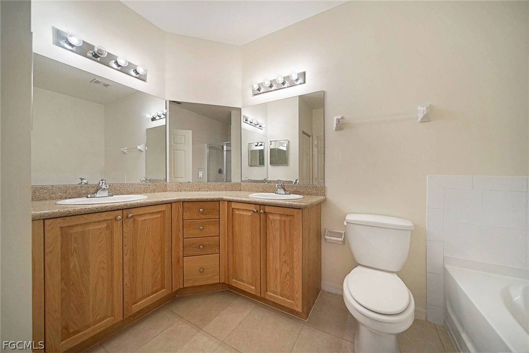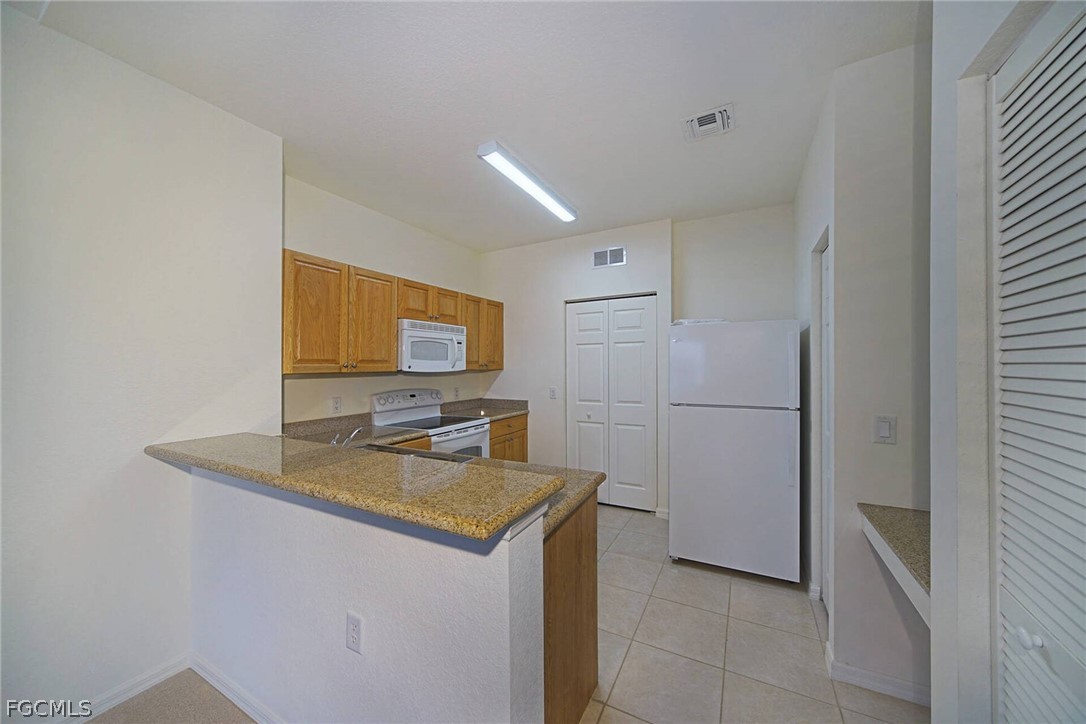 BEAUTIFUL 2 bed/ 2 bath townhouse with balcony on second floor features a lovely open kitchen plan with high ceilings and screened patio. One car garage connected under the unit, allowing access into the home. The kitchen has oak cabinets, granite counter tops w/raised breakfast bar counters. Home features a split bedroom plan. The master bedroom has 2 walk in closets. Master bath has a separate tub and shower and dual sinks. Second bedroom is next to a bathroom in the hall. Walk in laundry room has washer, and dryer, basic cable and water included. The club house is spacious, elegantly decorated and has a kitchen. Other amenities include an infinity edged pool overlooking the 5 acre lake and a state of the art exercise room. Conveniently located next to a Publix shopping plaza. 10 minutes from Fort Myers and surrounding areas. Schedule your viewing today!