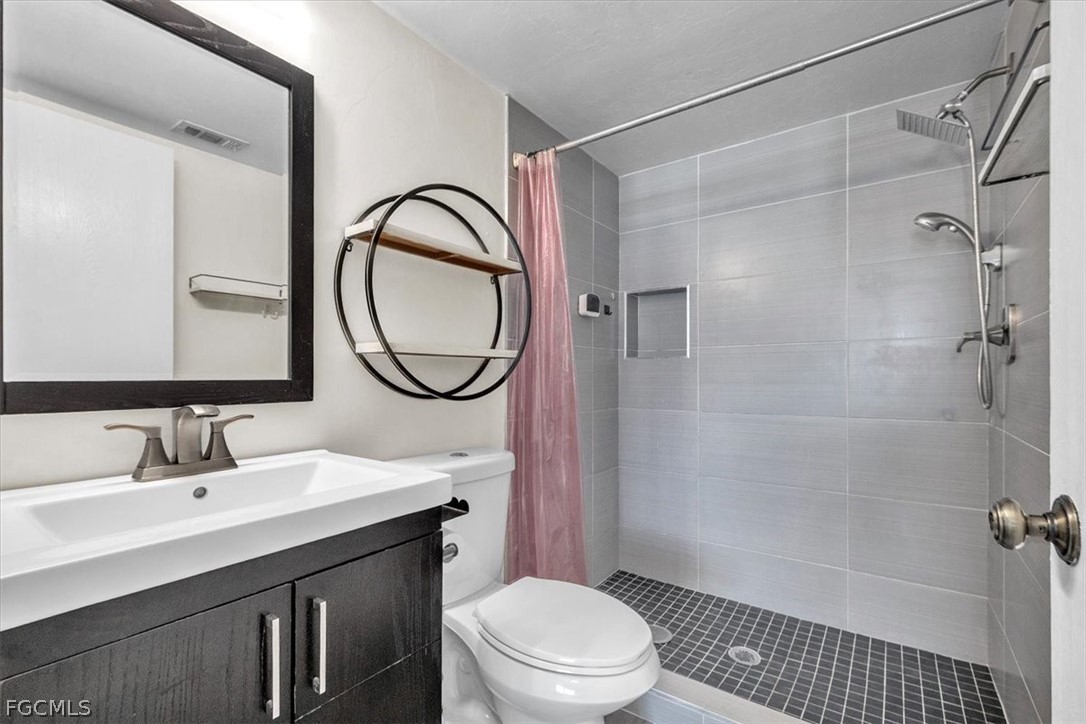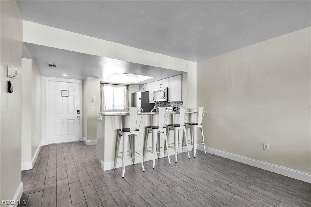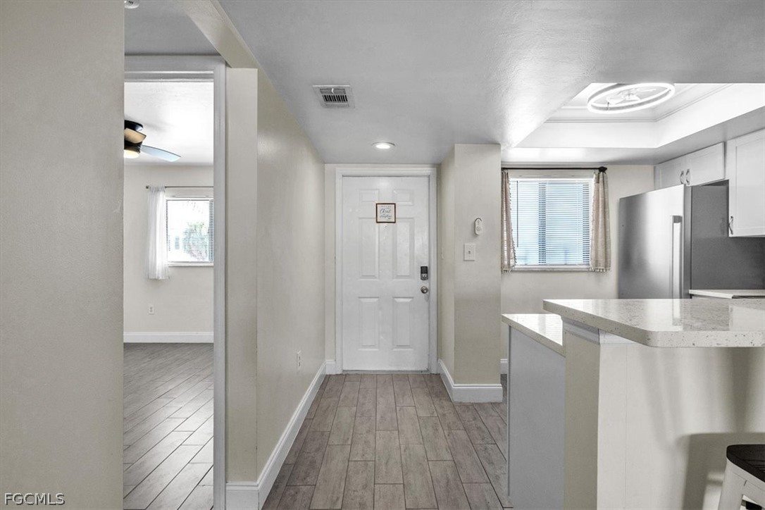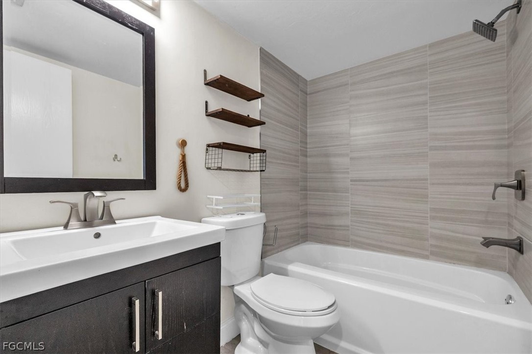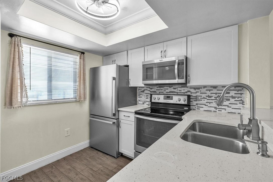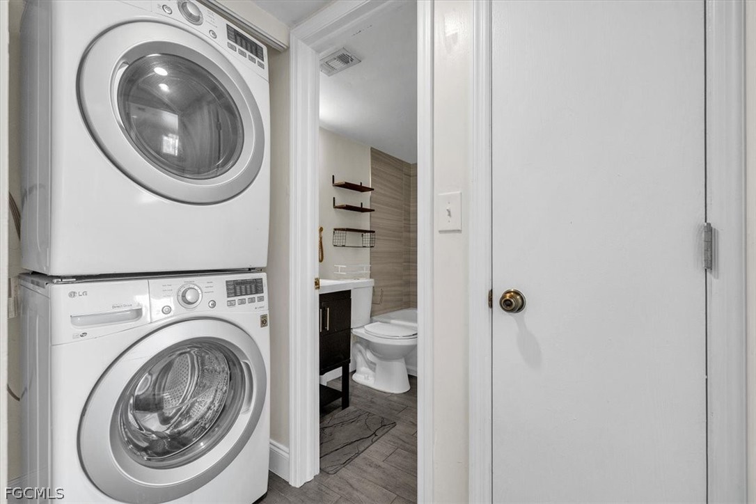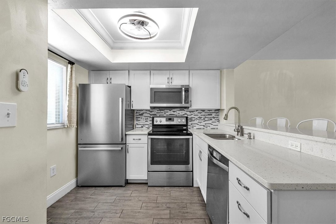 Beautifully remodeled 2 bedroom, 2 bath second floor condo overlooking the lush community landscaping and pool in a peaceful 55+ community. This move in ready home features plank tile flooring, quartz countertops, stainless steel appliances, new refrigerator, new kitchen cabinets, updated bathroom vanities, new water heater, new air conditioner, and a stylish tiled shower. The unit also includes a convenient in unit washer and dryer. Located close to Downtown Fort Myers, with easy access to Fort Myers Beach, RSW International Airport, I-75, shopping, and restaurants. Enjoy relaxed Florida living with low quarterly HOA fees. Perfect as a seasonal getaway or full time residence in the heart of Southwest Florida. NOTE: Ongoing renovations include brand new railings and refinished balconies at the back of the building, with much of the work already completed. The assessments for these upgrades have been fully paid, and the project is expected to be finished within the next few months. No additional assessments required!