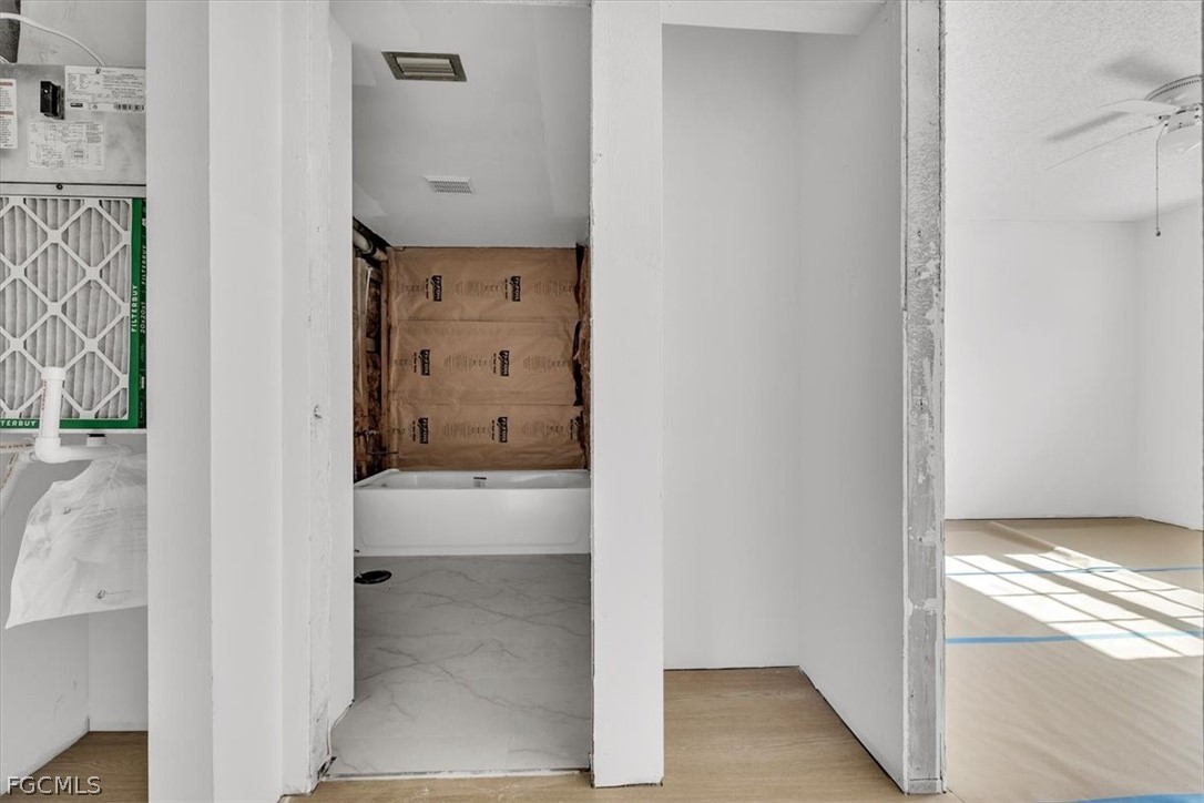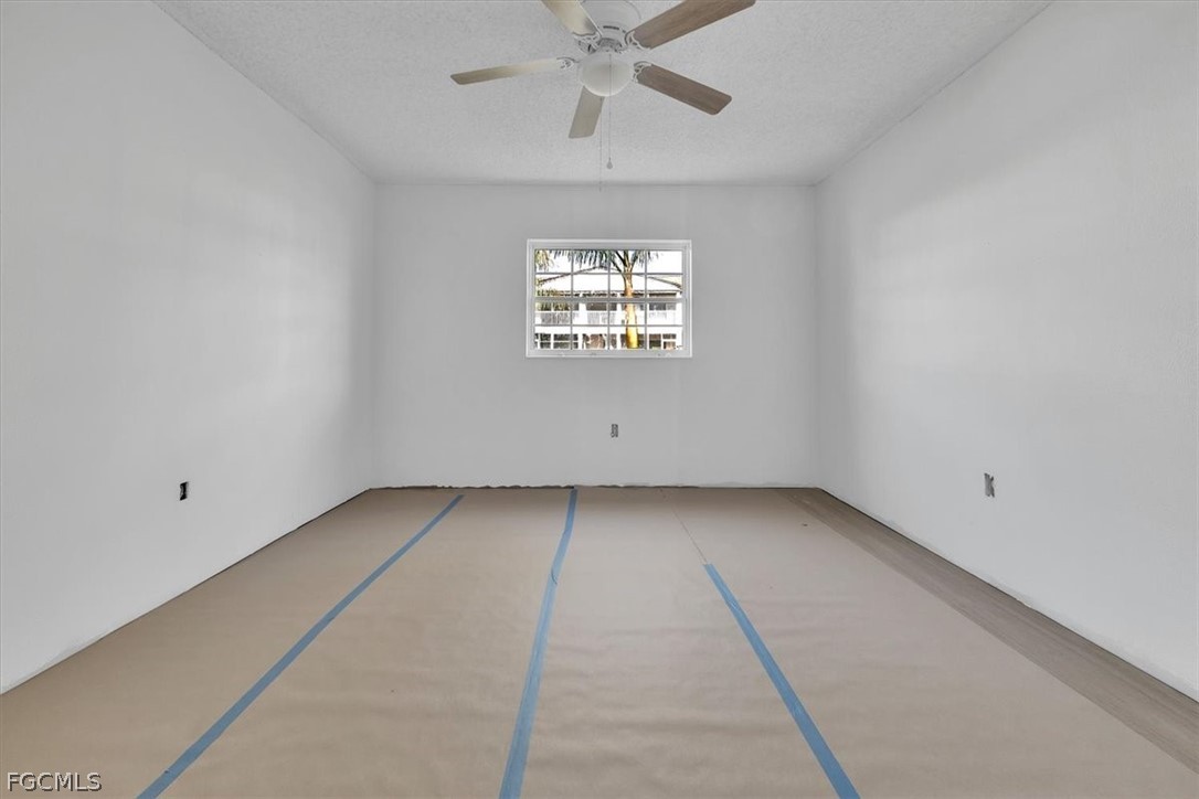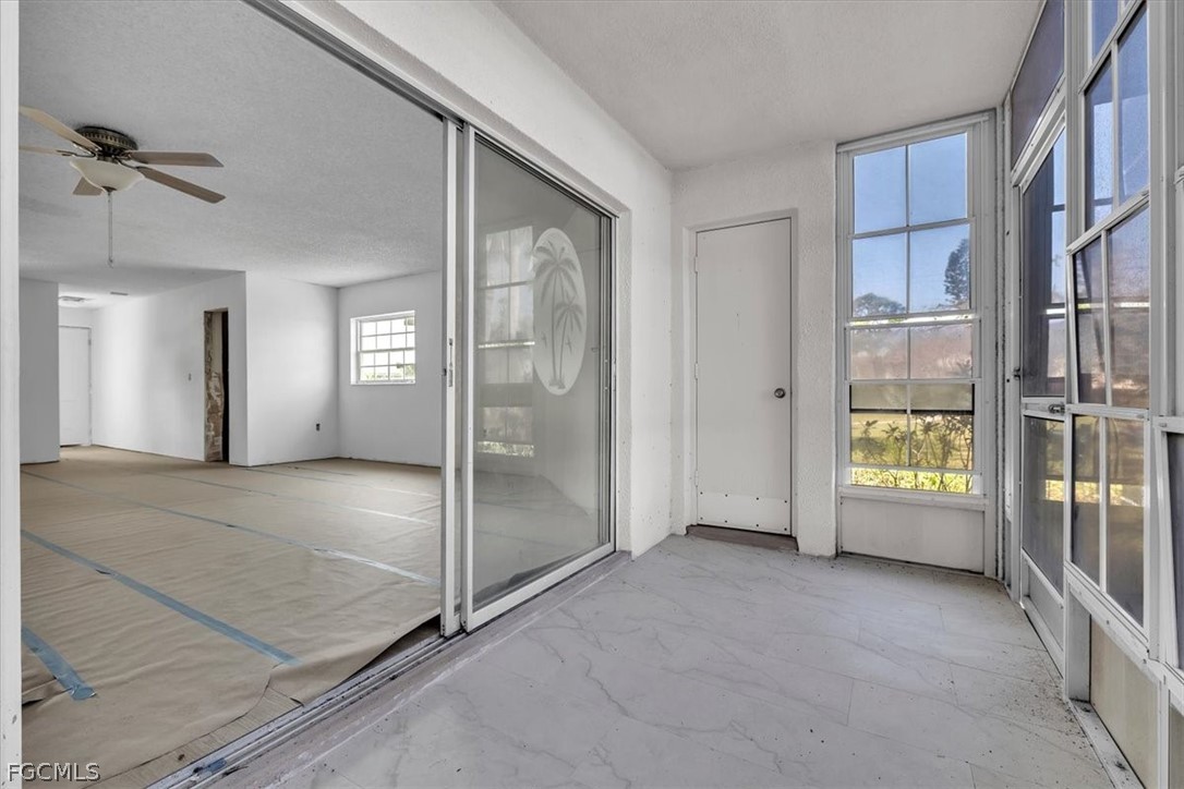 Don’t miss this affordable 2-bedroom, 2-bath end-unit ground-floor condo in the highly desirable Foxmoor Condo Community. This unit was previously affected by flood damage; the homeowners’ association is responsible for completing all repairs and renovations. The condo is being sold as-is, not immediately move-in ready, with buyers purchasing prior to completion. Inside, the living and dining areas are bright and open. Abundant storage—including convenient under-stairwell space—and a dedicated laundry room for added convenience. The kitchen features its original upper cabinetry, with a new microwave installed as part of the updates. Natural light from the window highlights the functional layout. New luxury vinyl flooring has been installed throughout the condo, complemented by fresh interior paint, providing a clean, updated foundation. Both bedrooms are generously sized, filled with natural light, and each features a private bathroom. The primary suite includes a walk-in closet, while the guest bedroom has a built-in closet for easy organization. The bedrooms and bathrooms are unfinished, though the guest bathroom already features a new tub and tile flooring. Enjoy outdoor living on the screened lanai with vinyl windows, perfect for year-round enjoyment of the lush, tropical landscaping. The community pool is just a short walk away, adding to the relaxed Florida lifestyle. The monthly condo fee covers insurance, lawn care, water and sewer, trash removal, and full access to community amenities, including the pool, clubhouse, shuffleboard, tennis, and pickleball courts. Beautiful palm and oak trees throughout the community create a serene, inviting atmosphere. Conveniently located just minutes from grocery stores, restaurants, and downtown Fort Myers, and approximately twenty minutes from Southwest Florida International Airport, this condo offers both comfort and a prime location. Whether you’re seeking a year-round residence or seasonal retreat, this property presents a wonderful opportunity to enjoy low-maintenance living with a whole new interior.
