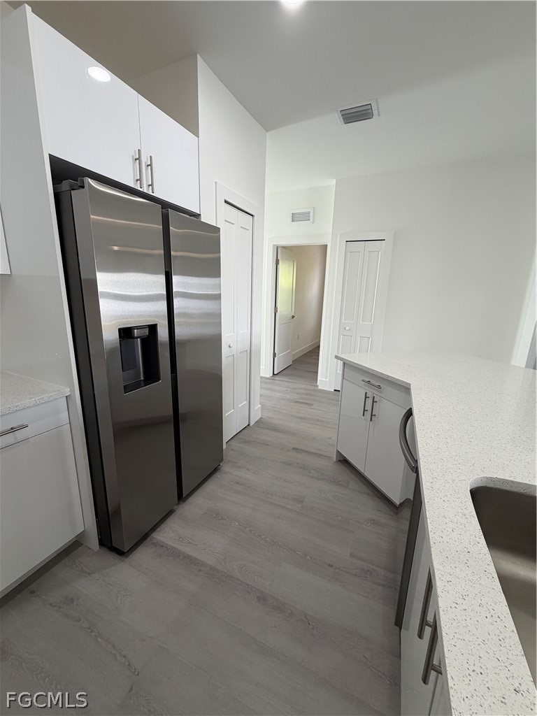 Be the first to live in this stunning brand new 3 bedroom, 2 bath fenced backyard with a divider between both units, providing each residence with its own private outdoor space. Covered lanai, a 1 car garage with additional parking space in the long driveway that can fit two additional cars, designed with modern finishes and comfortable living in mind. This never lived in residence features a bright open concept layout with stylish luxury vinyl flooring, recessed lighting, and large windows that fill the space with natural light.