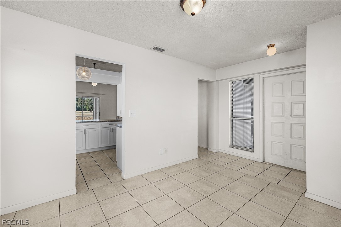 2 bedroom 2 bath plus bonus room duplex is conveniently located in NE Cape near Andalusia & Diplomat. Be welcomed by the large screened entry. Brand new wrap-around kitchen with granite counters opens to the great room for family conversations. Enjoy the bonus room however you choose.... office, den, exercise or additional entertainment room. Primary bedroom features two closets & en suite bathroom .New A/C & new water heater for efficiency with electric. The unit is all tile including the lanai. Vaulted ceilings provide a spacious, open feeling Private laundry located on lanai. Nice open back yard. Easy to see!