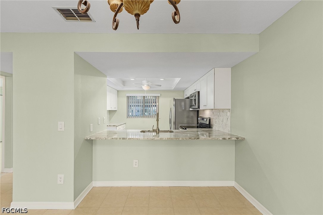 Serene Lakeside Condo in Royal Woods – Freshly Remodeled & Move-In Ready! Nestled in the peaceful Royal Woods community of Fort Myers, this first-floor 2-bedroom, 2-bathroom condo at 17423 Birchwood Ln #A2 delivers stunning lakefront living with northern exposure for soft, all-day natural light and no harsh afternoon sun. Built in 1984 and completely updated, this low-maintenance gem (approx. 989 sq ft) is unfurnished and ready for your personal touch. Enter into an inviting open-concept layout with neutral walls and tile flooring throughout. The modern kitchen features crisp white shaker cabinets, beautiful granite countertops, a breakfast bar, stainless-steel appliances (refrigerator, oven/range, microwave, dishwasher), and plenty of workspace—ideal for cooking or casual dining. The spacious living and dining areas flow effortlessly to a screened lanai through sliding glass doors, offering peaceful lake views framed by palms and lush greenery—perfect for morning coffee or evening relaxation.