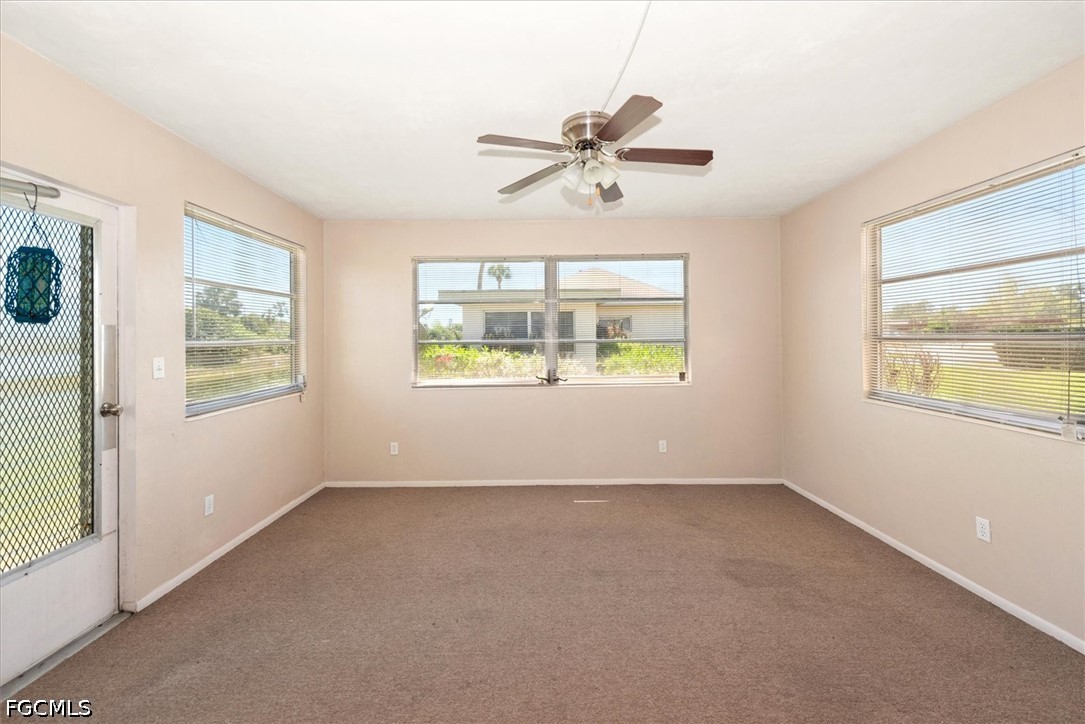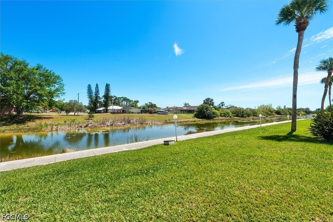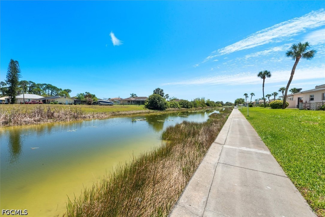 WATERFRONT - END UNIT - two-bedroom, two-bath condo in the inviting 55+ community of Beach Club Colony. Larger floorplan - 970 sq ft with Huge Florida Room. City water and sewer. The pool and picnic area are near the unit. Enjoy water views from your enclosed lanai, or stroll along the Lake Camille canal and witness the abundance of fish and wading birdes. The community is active with amenities like shuffleboard courts and a private pool, perfect for socializing and relaxation. Laundry, lawn service, pool service, common Lighting and Building Insurance are all part of the Association fees. Not is a flood zone. Located on Joel Blvd, you'll benefit from convenient access to gas stations, restaurants, grocery stores, and other essential services. Additionally, enjoy easy commutes to State Road 80 and the heart of Lehigh Acres. Beach Club Colony offers a lifestyle of comfort, community, and convenience.