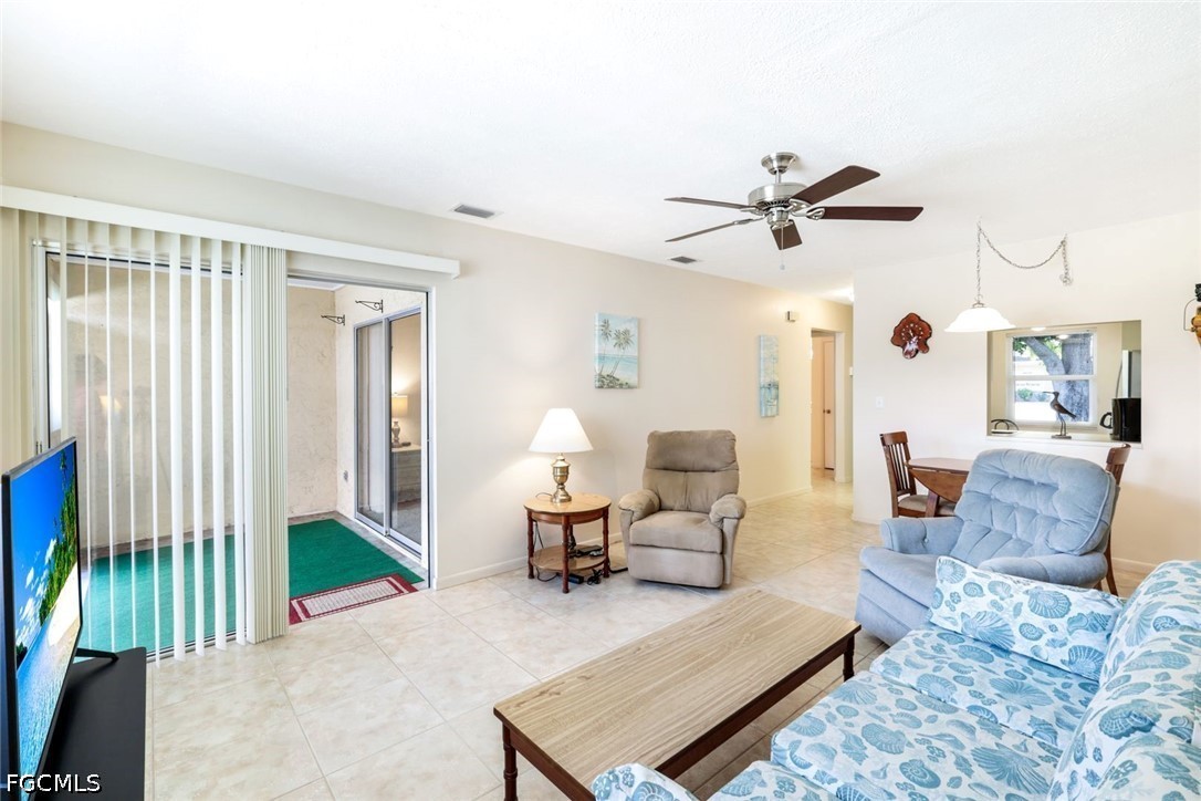 Move-in ready and turnkey, this charming and beautifully maintained condo is located in the heart of Downtown Cape Coral in a nice and quiet area. This 1-bedroom, 1-bath gem is part of an intimate, single-story community of only 10 units, offering a rare sense of privacy and tranquility. Just steps from restaurants, parks, shopping, and dining, and only a short drive to the area’s beautiful beaches and Marinas. Start your mornings with peaceful pool views and step right out from your private lanai to enjoy the sparkling water just beyond your door. Inside, the bright living area features a comfortable sleeper sofa for guests, two recliners and a cozy dining space, perfect for relaxed everyday living. The bedroom offers generous closet space and a serene retreat where you also wake up to the pool view just outside. Additional highlights include an assigned parking space, guest parking, and the peace of mind that these units have never flooded.