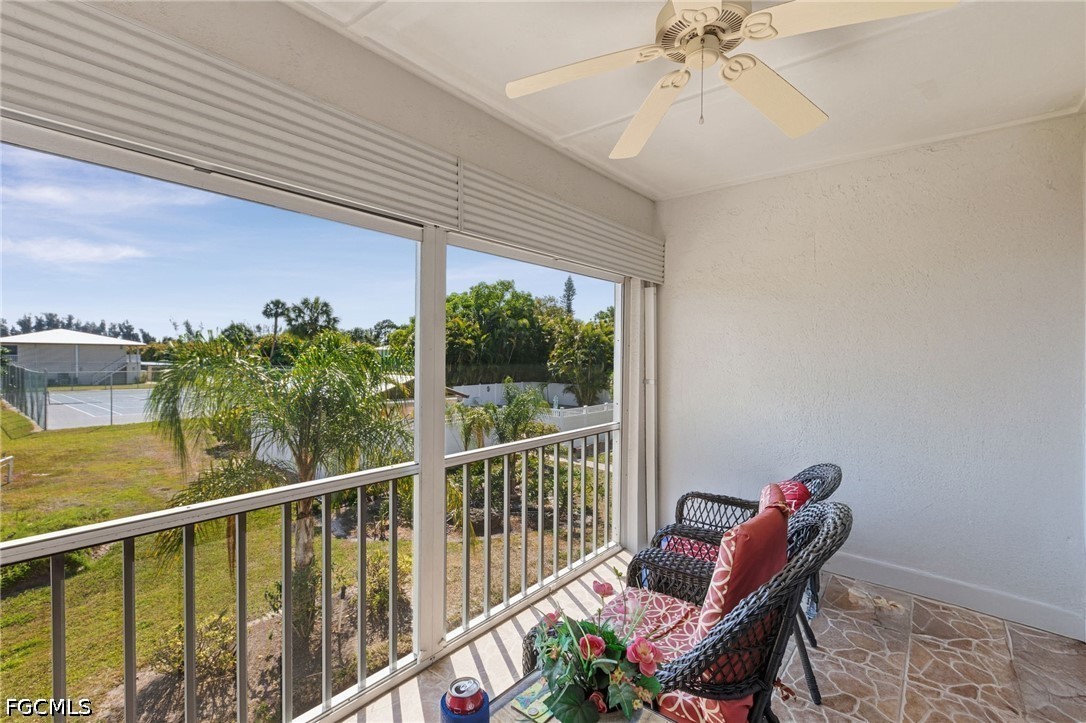 Location! Location! Location! Less than 5 miles to the beaches of Sanibel and Fort Myers Beach, and close to restaurants, shopping, and everyday conveniences. This second-floor, fully furnished 2-bedroom, 2-bath unit offers approximately 920 square feet of comfortable living space and showcases beautiful sunrise and pool views from your private screened lanai and has a Store Unit. The open floor plan connects the kitchen, dining, and living areas, creating a light and airy feel throughout. Enjoy the natural breeze that flows through the lanai and new self-storing screen door, helping keep the space comfortable while reducing cooling costs. The home reflects true pride of ownership, featuring tasteful décor, thoughtful upgrades, and a bright, inviting atmosphere.