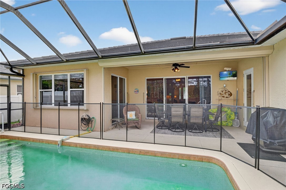 Available for January-April only.This beautifully appointed 3-bedroom plus den, 2.5-bath home offers spacious, comfortable living in a desirable gated community. The thoughtful layout includes a private guest wing with two bedrooms (bedroom 1 with a king size bed and bedroom 2 with a queen size bed), a den with desk and twin bed, and a full bathroom, ideal for visitors or those traveling with extended family. The expansive primary suite features a king size bed and its own seating area. The primary suite has direct access to the pool through its own door that opens directly onto the lanai. A luxurious bathroom with a soaking tub and separate step-in shower finishes out the primary suite. The large kitchen provides ample counter space and storage. There's plenty of room to move around and cook as a family in this kitchen. Not to mention, it is fully stocked with everything you need and more. The kitchen opens to a generous living room with abundant seating and even a foosball coffee table—perfect for gathering and entertaining. An array of books fill the bookshelves in the living room, so the book lover of the family will have a selection to choose from. Outside, the sparkling pool creates a relaxing retreat for your enjoyment. The childproof fencing is there for the little one's safety, but it can be easily removed if it is not needed. With its inviting layout, generous living spaces, and relaxing outdoor amenities, this home offers comfort, privacy, and convenience. Located in Gateway, tenants will have access to the Gateway amenities and will be close to shopping, restaurants, the airport, and i75. Just 20 miles to Fort Myers Beach and 29 miles to Sanibel so a day at the beach is not far away. ***No pets please***