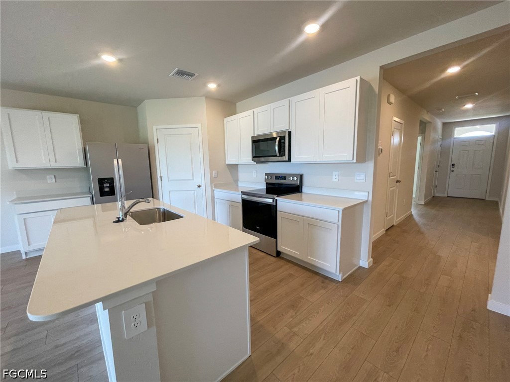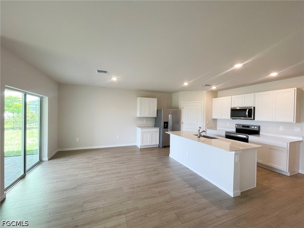Stunning brand-new 2026 construction 4-bedroom, 2-bathroom, 2-car garage waterfront home situated on an oversized lot! Conveniently connected to city water and sewer, with a fence currently being installed for added privacy. This spacious open-concept layout features a stylish upgraded kitchen with quartz countertops, modern cabinetry, a large sit-in island, and ample space for entertaining. The master suite offers a tranquil retreat with waterfront views, and the master bathroom features dual sinks, quartz countertops, and spacious walk-in closets. Step outside to enjoy true Florida living as you relax on your lanai, taking in peaceful canal views and coastal breezes. Additional highlights include stacked stone exterior accents and a brick paver driveway, enhancing the home's curb appeal. Equipped with the “Home is Connected” smart home package. Ideally located close to shopping and dining. Don’t miss this opportunity to live in a brand-new waterfront home offering the perfect blend of modern luxury and Florida lifestyle—schedule your showing today!