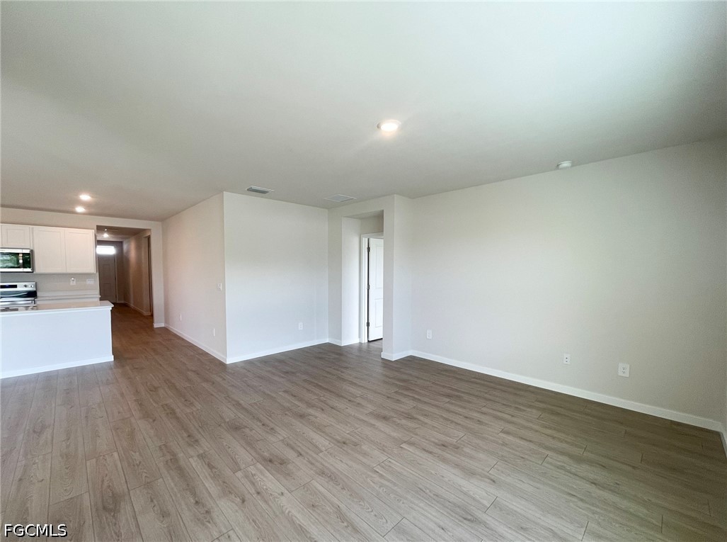 Brand-new 2026 construction in Cape Coral! This modern 4-bedroom, 2-bathroom, 2-car garage home offers a bright, open-concept layout designed for comfortable Florida living. Conveniently connected to city water and sewer. The spacious floor plan features a stylish kitchen with quartz countertops, sleek modern white cabinetry, and stainless steel appliances. The large master bedroom includes an elegant master bath with dual sinks, quartz countertops, and spacious walk-in closets. Enjoy a spacious backyard with covered lanai, perfect for relaxing or entertaining. Additional highlights include the “Home is Connected” smart home package and beautiful pavers on both the driveway and lanai. Conveniently equipped with washer and dryer. Located in a quiet, desirable neighborhood close to shopping and dining, this new construction home combines modern design with everyday comfort—make it yours today!