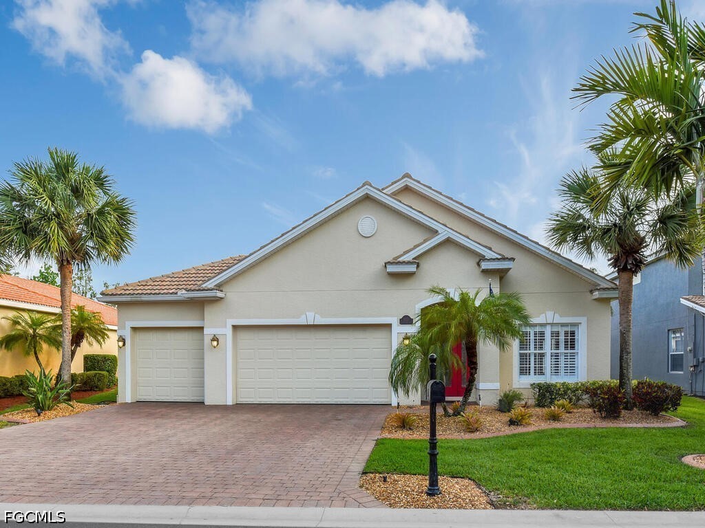 DECEPTIVE FROM CURB! Don't let the front of the home fool you... it is PACKED w/ custom luxury features and offers a sprawling layout from front door to lake! Recent updates include- freshly painted interior, plantation shutters, pavers have been cleaned & sealed, and tall cabinetry & epoxy floor in 3-car garage. You will love the layout of the home- living & family room design, formal dining area, wide kitchen w/ breakfast bar & butler area, pantry w/ French doors, breakfast nook, crown molding, contemporary glass door at front entry, custom entertainment wall in family room w/ shiplap, and massive screened outdoor living space w/ saltwater heated pool & covered sitting area. Magnolia Lakes is a gated community of all single family homes that offers a playground w/ picnic area. You will have access to all of Gateway amenities including optional social/golf membership to The Club. Very convenient location- minutes away from RSW international airport, I-75, Spring Training Stadiums, schools, restaurants, grocery store, shopping and so much more!