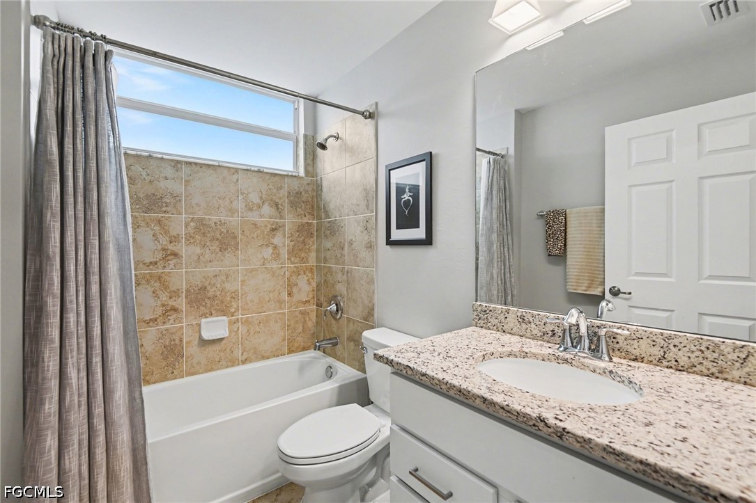 The Owner’s Suite includes two walk-in closets, a designer ceiling fan, and an oversized shower. Bedroom 2 also has a walk-in closet; Bath 2 features a tub/shower. The den overlooks the living area. A short stroll down the street takes you to a community satellite pool with barbecue.