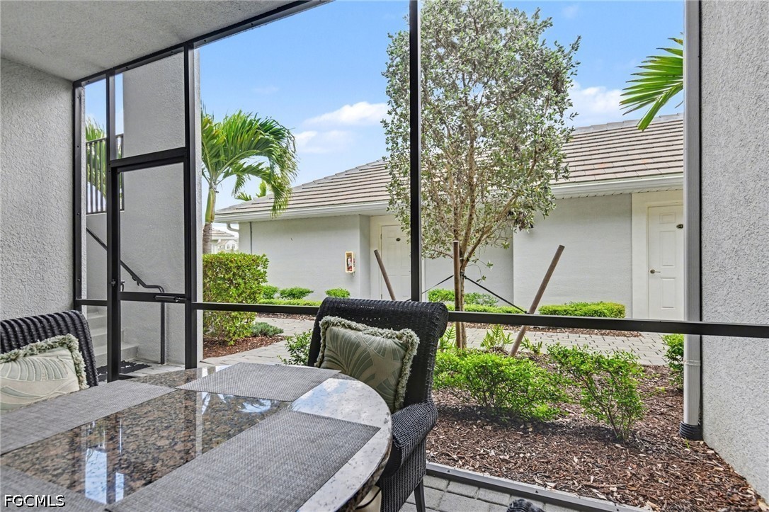 Close to amenities & golf course! Overlooking the 18th green, lake, driving range, Pro Shop & Clubhouse — BEST VIEW ON THE COURSE!!! First-floor end unit “Arabella” floor plan — largest Veranda condo with 1-car garage. A 3-minute walk or easy golf-cart ride to the course, club, and amenities.