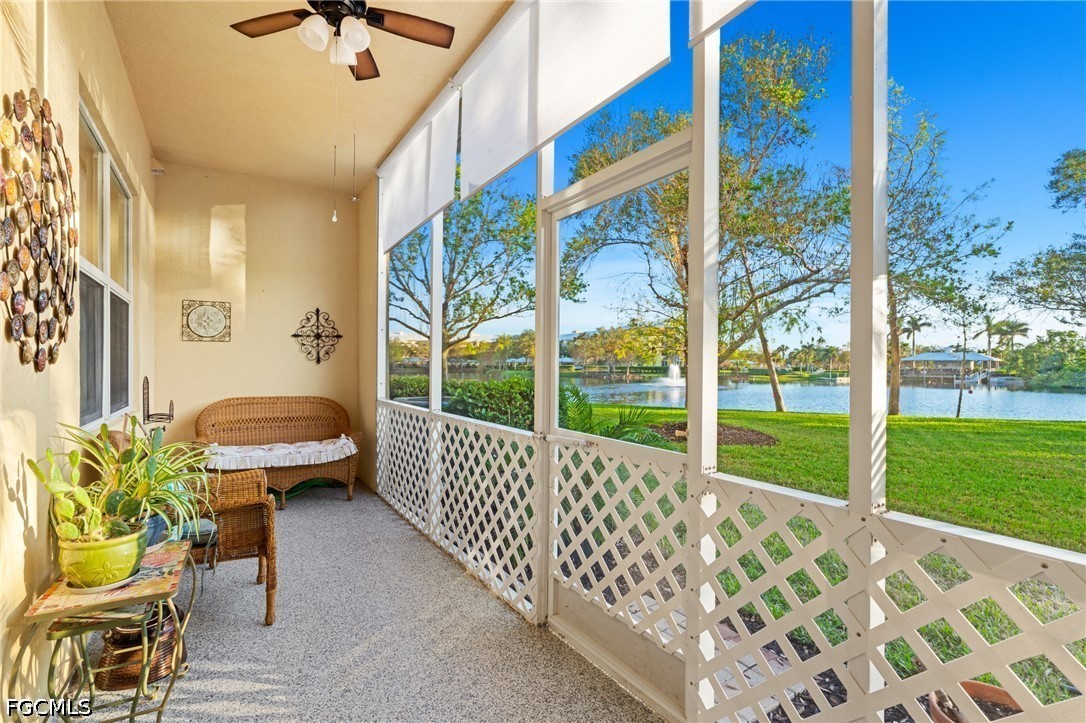 Indulge in the best of Southwest Florida living in this beautifully partially furnished lakefront townhome, perfectly nestled within the highly sought-after gated community of Sail Harbour at HealthPark. Offering exceptional privacy and picturesque waterfront views, this 2-bedroom, 2.5-bath residence combines elegance, comfort, and an unbeatable location. Perfectly positioned with coveted southwestern exposure, the home is bathed in golden natural light throughout the afternoon, creating a warm and inviting ambiance while showcasing the serene lake and fountain views. The spacious screened lanai serves as your own private retreat—an ideal place to enjoy morning coffee, evening sunsets, or simply relax while overlooking the tranquil water and lush tropical landscaping. Inside, the thoughtfully designed open floor plan flows effortlessly, featuring elegant tile flooring throughout the main living area, a convenient half bath, and a stylish kitchen designed for both everyday living and entertaining. Granite countertops, a breakfast bar, and a spacious pantry provide both sophistication and functionality. Upstairs, the split-bedroom design offers exceptional privacy for both owners and guests. The luxurious owner’s suite is a peaceful sanctuary, highlighted by two oversized walk-in closets, and a spacious spa-inspired bath with dual vanities, a soaking tub, and a separate walk-in shower. The guest suite is equally impressive, offering generous space, a walk-in closet, and its own private bath. Additional features include upscale Levolor window coverings for enhanced privacy and an attached one-car garage with durable epoxy flooring. Residents of Sail Harbour enjoy the peace of mind of a 24-hour gated entrance along with access to a sparkling community pool. Ideally located in the heart of South Fort Myers, this home is just minutes from the sugar-sand shores of Fort Myers Beach, Sanibel Island, and Captiva Island, as well as premier shopping, dining, entertainment, HealthPark Medical Center, and Southwest Florida International Airport.