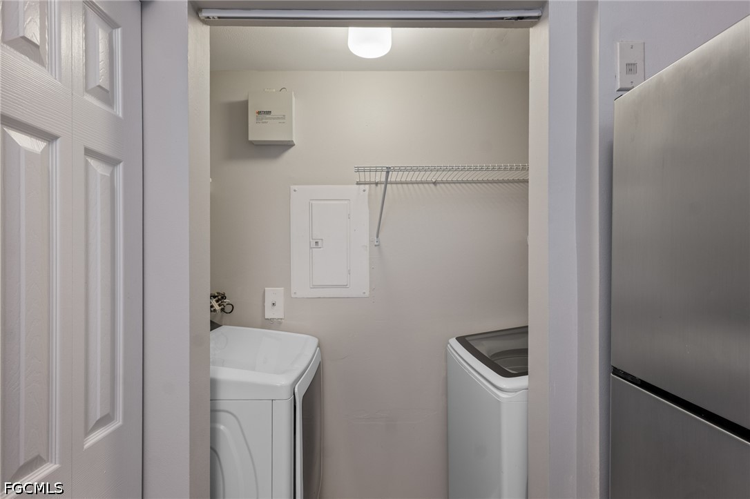 Enjoy easy living in this light and bright 3-bedroom, 2-bath second-floor condo in the desirable Reserve of Naples. The open great room offers an inviting feel, featuring a well-appointed kitchen with a breakfast bar and stainless steel appliances, perfect for everyday living or entertaining. Tile flooring runs throughout the main living areas, adding a clean and cohesive look. The living area opens to a private balcony, creating a comfortable indoor-outdoor flow. A split bedroom layout provides added privacy, with the primary suite offering an ensuite bath and a walk-in closet. Two additional bedrooms and a full bath provide plenty of space for guests, a home office, or hobbies. A convenient in-unit laundry room adds to the functionality of the home. Residents of the Reserve at Naples enjoy a gated setting with beautifully maintained grounds, along with access to amenities like a resort-style pool, fitness center, and tennis courts. Ideally situated just a short drive from Naples’ beaches, popular dining spots, and shopping destinations, this condo is well-suited for full-time living or a seasonal getaway.