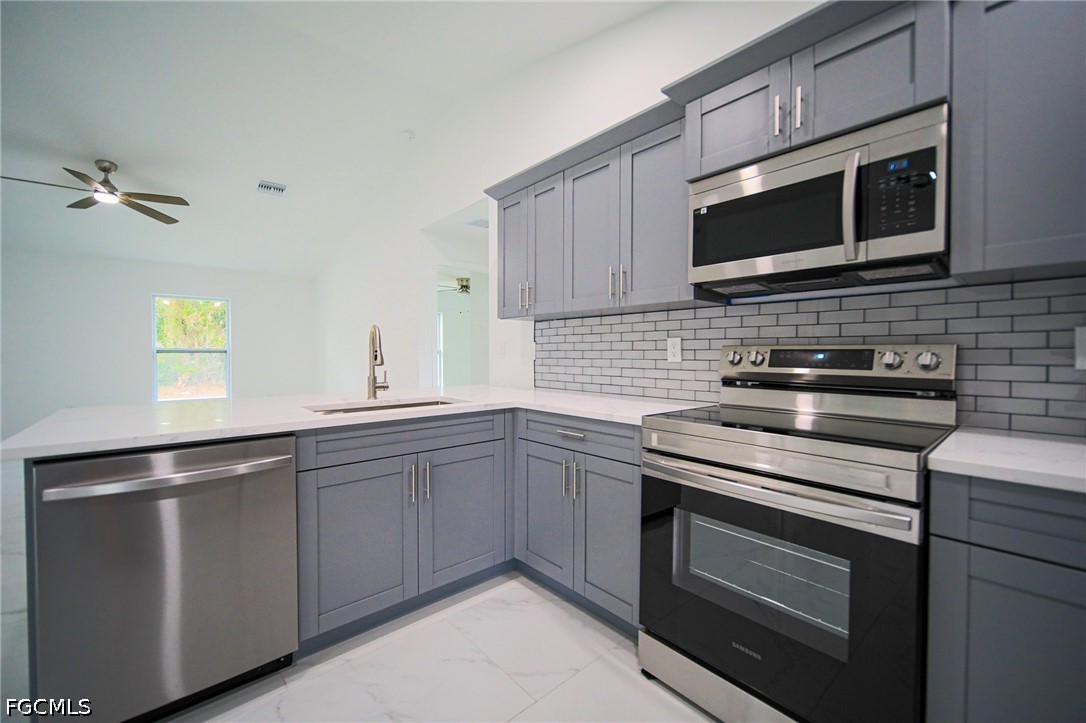 BRAND NEW CONSTRUCTION! You Will Be Amazed By The Quality Of This Brand New 3 Bedroom/2 Bathroom Home With Southern Exposure For Those Amazing Florida Sunsets On A Quarter Acre Lot In Lehigh Acres, FL. This Home Has 1258 SF Under Air And It Is COMPLETELY Finished With Its CO Issued! You Can Move Into It Today Or Use It As A Cash Flowing Rental Unit (High Demand). The Gourmet Kitchen Comes With Quartz Countertops, STAINLESS STEEL APPLIANCES, Real Wood Shaker SOFT TOUCH Cabinet Doors & Drawers, Glass Tile Backsplash, Floor To Ceiling Pantry, And A Large Breakfast Bar. Other Upgrades Include; GLASS ENCLOSED WALK-IN SHOWER IN THE PRIMARY BEDROOM, FREE BRAND NEW WASHER AND DRYER WITH PURCHASE OF THIS PROPERTY, HURRICANE IMPACT WINDOWS AND DOORS, Glass Back Door To Let In More LIGHT, Large Designer Porcelain Tile Flooring Throughout Entire Home, PAVER DRIVEWAY, High Ceilings, Large Living Room, Upgraded Baseboards, Large Dining Area, Custom Interior/Exterior Two-Tone Paint, Custom Ceiling Fans/Lights, Large Walk-In Closets, Quartz Countertops In The Bathrooms Along With Accent Tile Over The Tub Areas, New Landscaping Package With Lots Of Trees Surrounding The Lot, Southern Exposure For Those Beautiful Florida Sunsets, Epoxy Coating In The Garage And On The Open Covered Lania, And A Laundry Area Including A New Washer And Dryer Inside The Home. This Home Is Close To Regional Shopping Malls, Golf Courses, Interstate I-75, Regional Airport, FGCU, Restaurants, Schools, Golf Courses, MLB Spring Training Baseball, Outdoor Parks, Boat Ramps, Amazing Fishing, And Those Amazing White Sand Beaches Of The Gulf Of America!