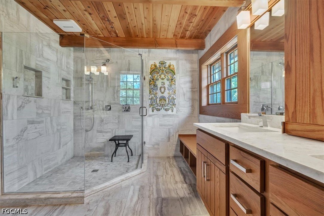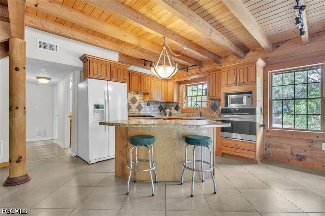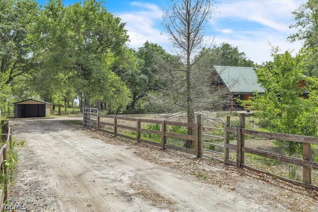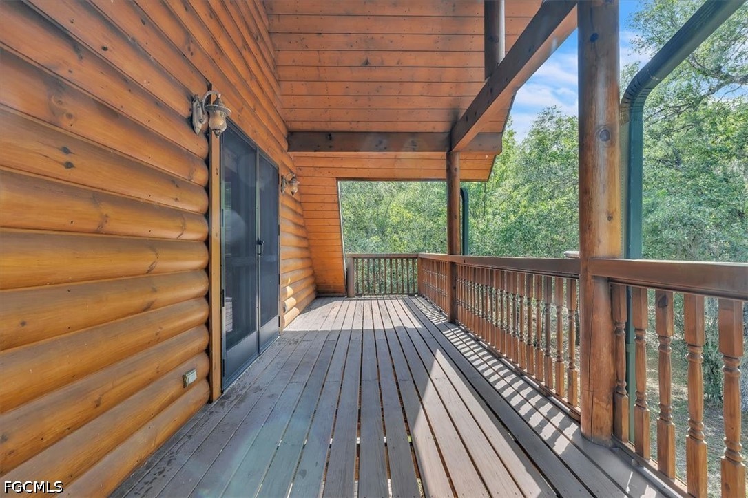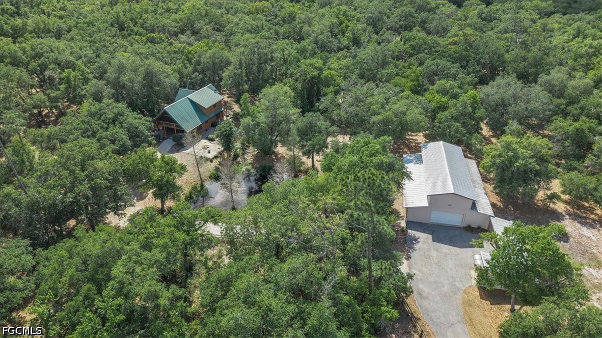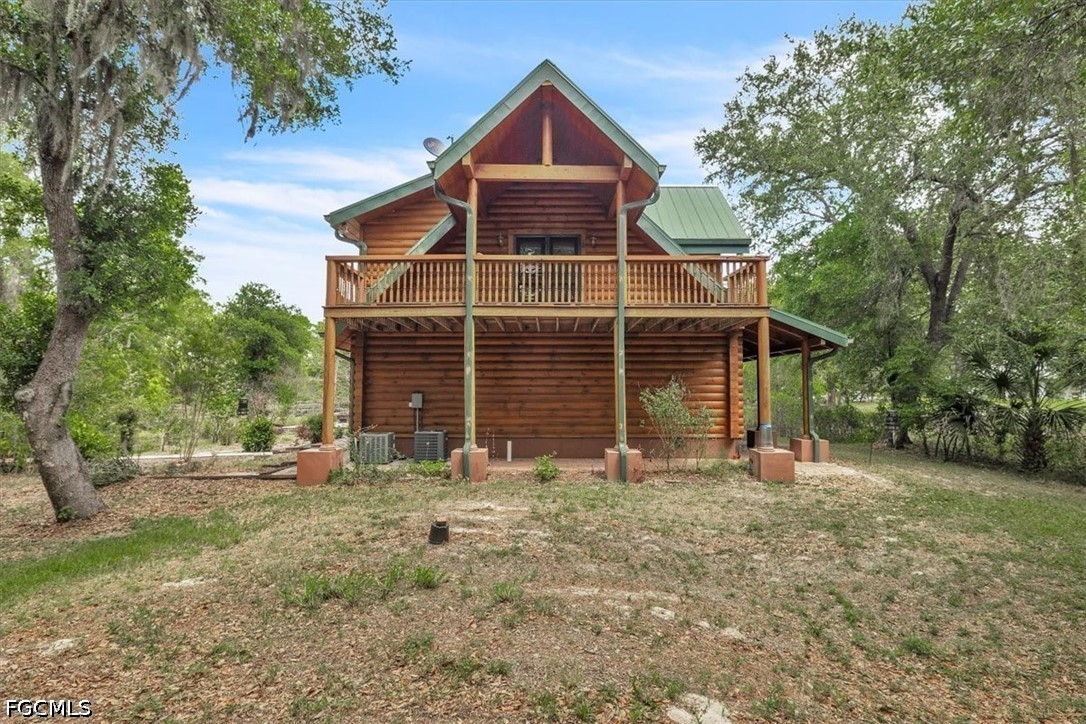 Tucked away on this beautiful wooded five acres, is a two-story 3 bedroom 2 full bath A-frame log cabin that offers a rare blend of rustic charm and refined finishes. Paired with an expansive 4,210 square foot barn that can be used for car enthusiasts or can be easily turned back to horse paddock, with additional outbuildings for ultimate versatility. Built in 2008, the home features an open-concept first floor where the living, dining, and kitchen areas flow seamlessly, showcasing true log-cabin craftsmanship. Exposed wood beams, soaring ceilings, natural wood flooring, and expansive windows fill the interior w abundant natural light, creating a cozy yet airy ambiance. The kitchen is a chef’s dream, with custom wood cabinetry, elegant marble countertops, decorative tile backsplash, a gas cooktop, built-in convection oven, and a center island with bar seating—perfect for entertaining. The main level also offers 2 nice sized guest bedrooms with built-in closets, a custom full bathroom with a walk-in shower and marble-top vanity, and a conveniently located laundry room. Upstairs, a spacious loft-style family room opens to a charming screened front balcony overlooking the expansive front yard. The primary suite features a cedar walk-in closet, a private balcony with views of the backyard and natural landscape, and an updated spa-like bathroom with natural wood ceilings, exposed beams, a custom double vanity, and a large glass-enclosed walk-in shower with floor-to-ceiling tile and abundant natural light. Downstairs French doors open to the outdoor front patio, ideal for enjoying the peaceful, private surroundings. Directly outside is a large open patio for entertaining right next to a beautiful winding creek that leads to a stocked pond. Adding to the property’s appeal, the 4,210 square-foot barn includes a small apartment w/full bath and multiple versatile rooms, while a detached building provides additional space for equipment. A gated front driveway first leads to the barn before reaching the home, offering exceptional privacy. This property perfectly blends the warmth and character of a log cabin with versatile outbuildings; Totally Fenced five acres. Nestled in Arcadia, it offers an ideal balance of privacy and convenience. Zoned A-10, the property provides the perfect setting to bring horses, raise livestock, or create your own hobby farm, with ample space for barns, paddocks, and outdoor activities. Just minutes from downtown Arcadia, you’ll enjoy easy access to grocery shopping at Publix and Walmart, local favorites like Slim’s Bar-B-Q and Brother’s Fish House, and a variety of casual dining options. Families will appreciate nearby West Elementary, DeSoto Middle, and DeSoto County High School, while outdoor enthusiasts can explore Morgan Park, the Peace River, and local trails for boating, fishing, and picnicking. Craft your gorgeous private retreat and enjoy the freedom and flexibility this home allows.
