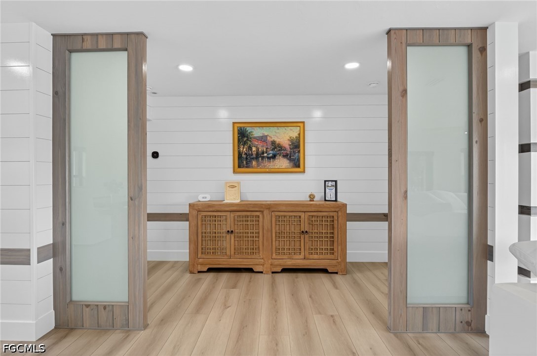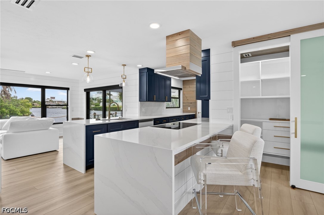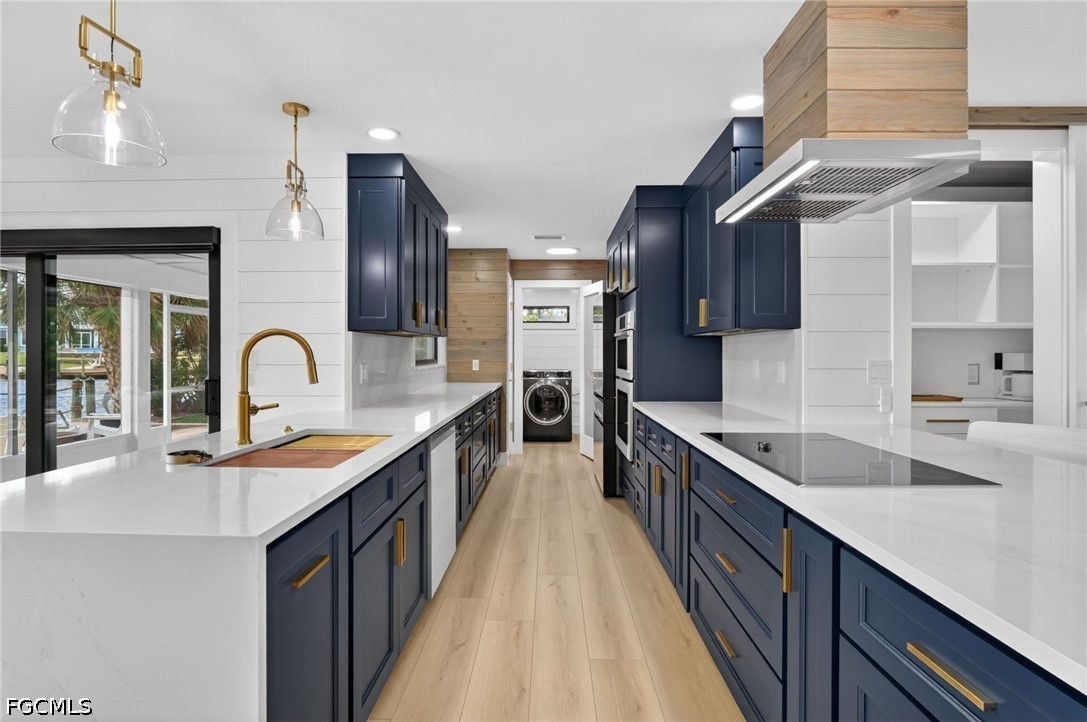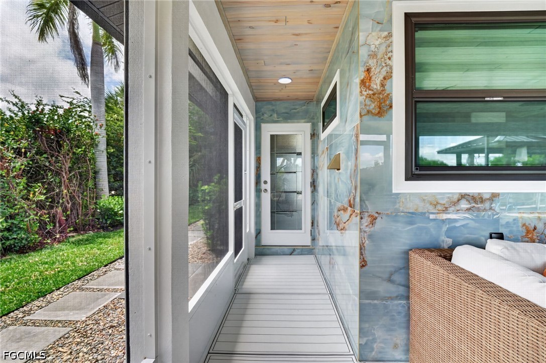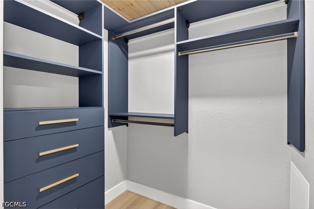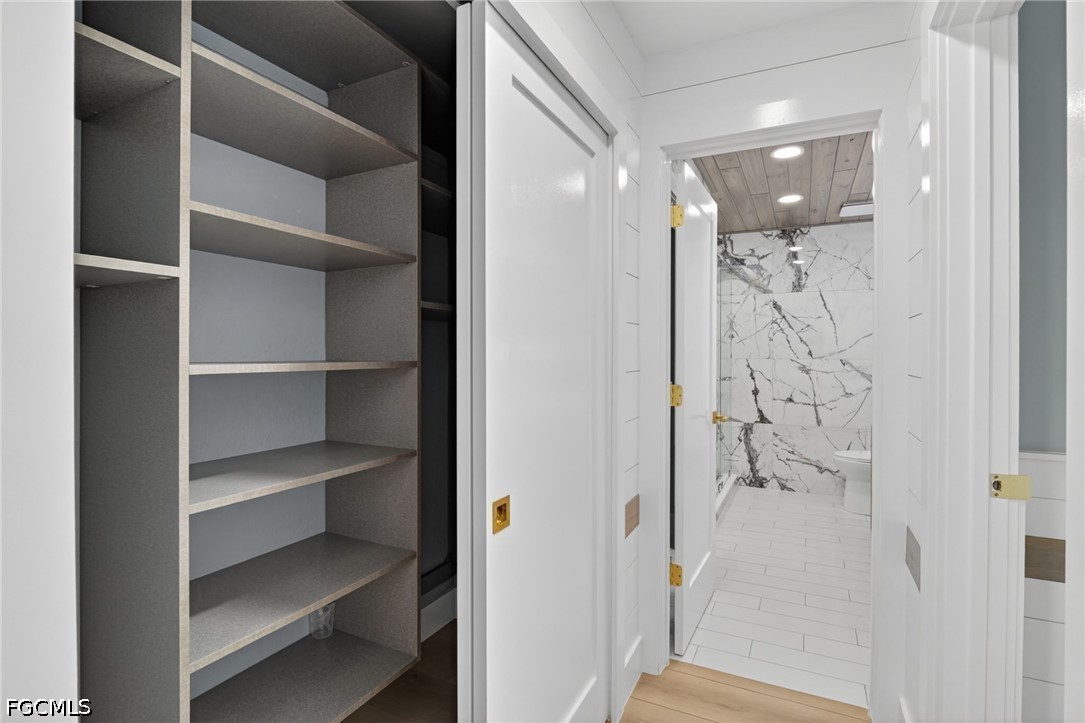 At the heart of the home, the kitchen features custom cabinetry, extensive pull-out storage, and dual pantry systems designed for both beauty and function. Silestone countertops featuring revolutionary Hybriq+ technology elevate durability and sustainability, while white glass Samsung Bespoke appliances create a clean, sophisticated aesthetic. The bathrooms serve as spa-like retreats, showcasing Synergy custom wood ceilings, floor-to-ceiling tilework, and Bernhardt vanities—blending warmth, texture, and tranquility. Throughout the home, California Closets systems have been seamlessly integrated across bedrooms, hallways, pantry, and baths, delivering elevated organization and storage. Natural light pours into the home through oversized picture windows and dual solar tubes, enhancing the open, airy feel of every space.