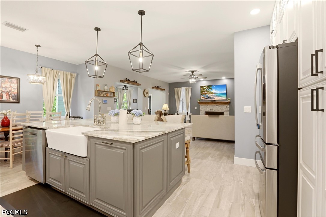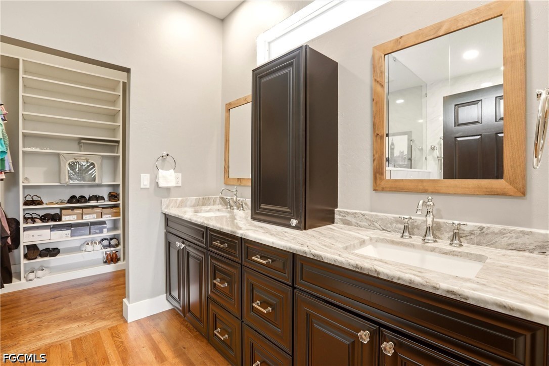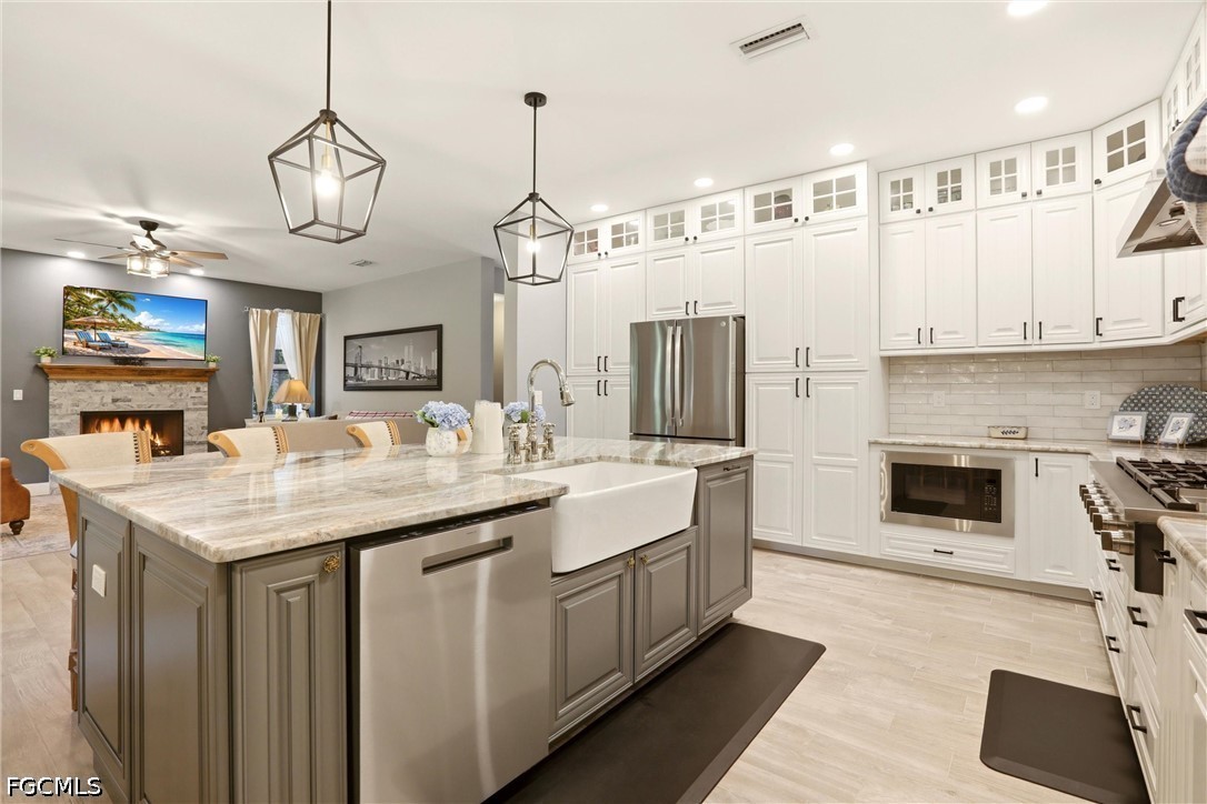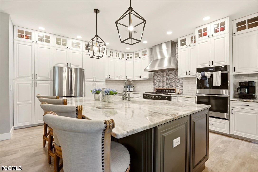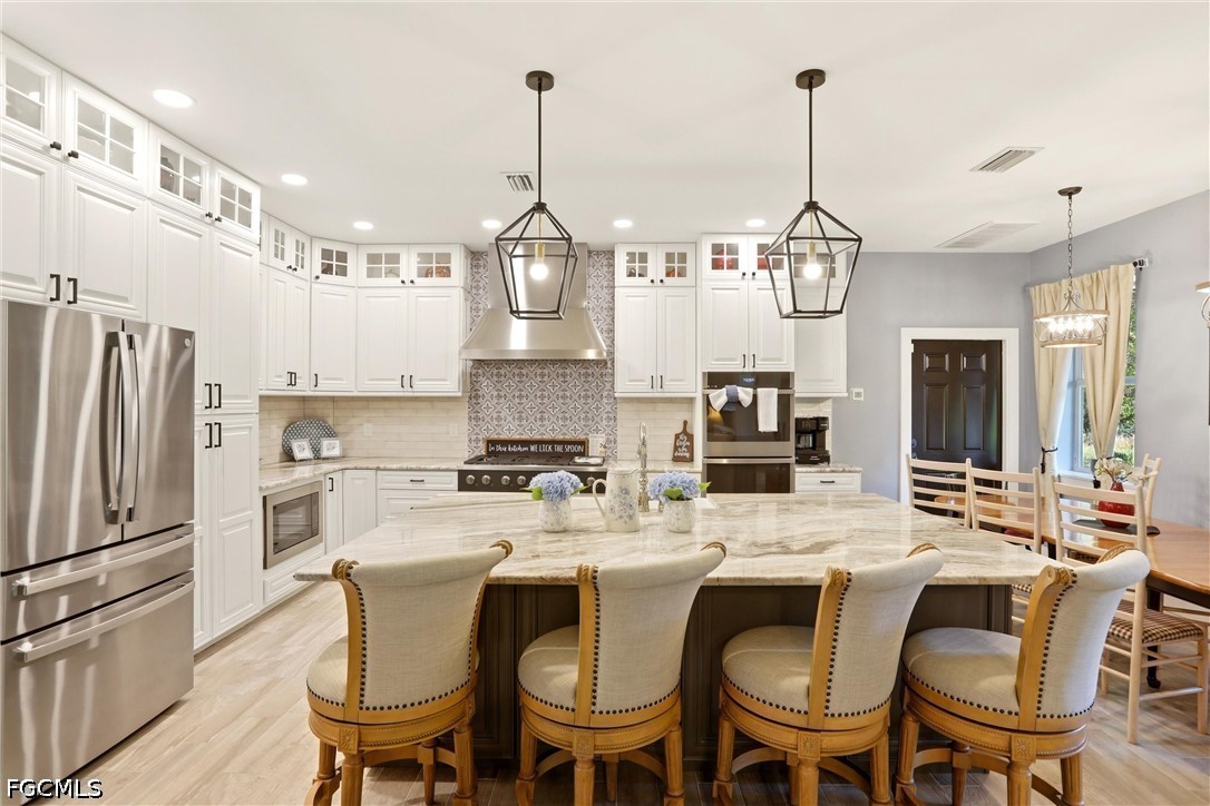 The home has been fully renovated boasting a totally redesigned kitchen and bathrooms, new flooring, and has been freshly painted on both interior and exterior. The master suite features a beautifully designed Closet Factory closet and dual vanities in the bathroom. The redesigned kitchen features a gas cooktop with built-in griddle, commercial grade hood, double wall ovens, all-new cabinetry featuring glass view uppers, a huge island/bar, and beautiful granite countertops; all offering both function and style. Bathrooms have been completely upgraded with new fixtures, vanity, mirrors, and tile, creating a clean, modern finish throughout the home. Home also features built-in shelving in the great room, and a den/study/office area perfect for working from home.