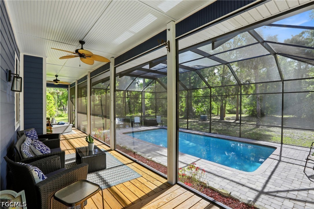 Major improvements include a new whole-home generator, whole-home RO system, and brand new Tough Shed on concrete pad, painted to compliment the house; all providing added space, reliability, and convenience. The outdoor space is equally impressive, with a refinished saltwater pool, a newly resealed pavered pool deck, and a brand-new screen enclosure. Whether you are entertaining family, guests, or simply embracing the tranquility of nature sitting on the fully enclosed wrap around porch; it is the perfect space for enjoying the natural surroundings year round.