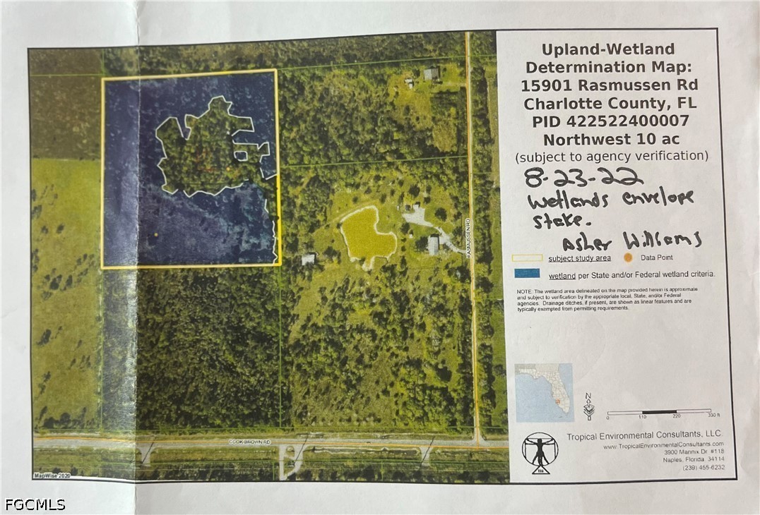 Creating your dream home on this beautiful 10+ acres is a breeze! LCEC POWER IS IN PLACE!!!? The Wetland Determination report is complete, and we have 2 acres of UPLANDS in the ideal spot for building, plus plenty of room to add a pool/spa and a barn. It’s very private, but you’ll have easy access to the property via your own private driveway. This Custom Michaela Design features a 3-car garage and a stunning, prestigious entryway. Inside, you’ll find 3 bedrooms, 3 full baths, and a half bath, a full-size dining room, a large kitchen with a huge island, a great room, a study/den, a walk-in pantry room, and a large laundry room (not just a walk-through from the garage). The primary bedroom has a large room with sliding doors to the lanai, 2 walk-in closets, a private water closet, a free-standing tub, 2 separate vanities, and a huge walk-through shower with multiple shower heads. Bedroom #3 is a second master with a private bath that leads out to the lanai, perfect for a pool bath. The great room boasts 11’4” tall ceilings, and to top it off, there’s an outdoor kitchen to complete this luxury home!!! You can make all your own custom selections, from the roof to the doorknobs! Building a custom home on this 10 acres is a wonderful way to get exactly what you want! Other plans are available, or feel free to bring your own. There’s a generous allowance included for the required site work!! The close proximity to Babcock Ranch, Publix, shopping, and dining makes this a perfect location! ***Seller Financing available for lot portion***