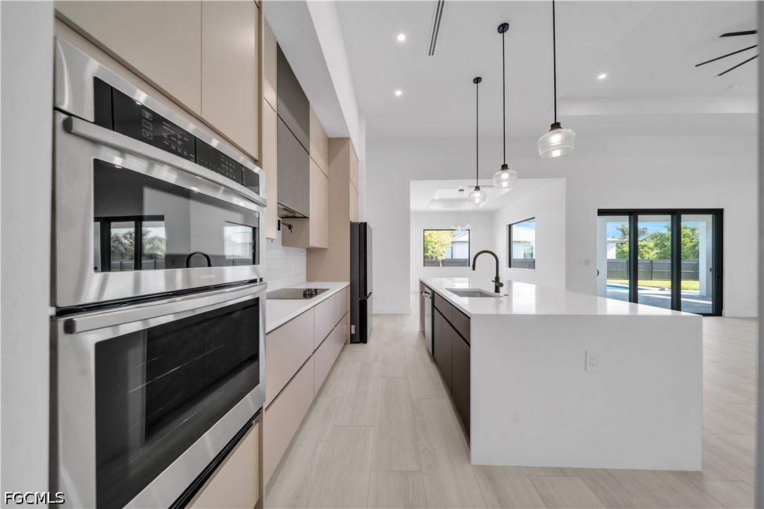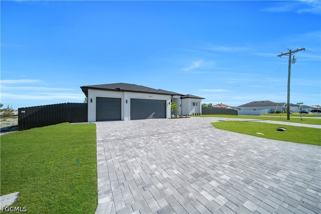 Welcome to this stunning brand-new construction home, perfectly situated on an OVERSIZE CORNER LOT of over 16,000 sq ft, offering exceptional space, privacy, and curb appeal. Located OUTSIDE OF THE FLOOD ZONE , with CITY WATER AND SEWER PAID FOR , this property provides both peace of mind and added value. The home features a modern design with high ceilings and bright, open living spaces that create an inviting and elegant atmosphere throughout. Enjoy Florida living at its finest with a beautiful private pool and a fully equipped outdoor kitchen, perfect for entertaining. The CIRCULAR DRIVEWAY adds convenience and sophistication, complemented by a SPACIOUS TRIPLE CAR GARAGE. The property is FULLY FENCED , with side access ideal for additional parking, boats, or recreational vehicles. Inside, you’ll find 4 generously sized bedrooms and 3 full bathrooms, thoughtfully designed for comfort and functionality. This move-in ready home is the perfect blend of luxury, style, and practicality—ready for you to enjoy from day one.
