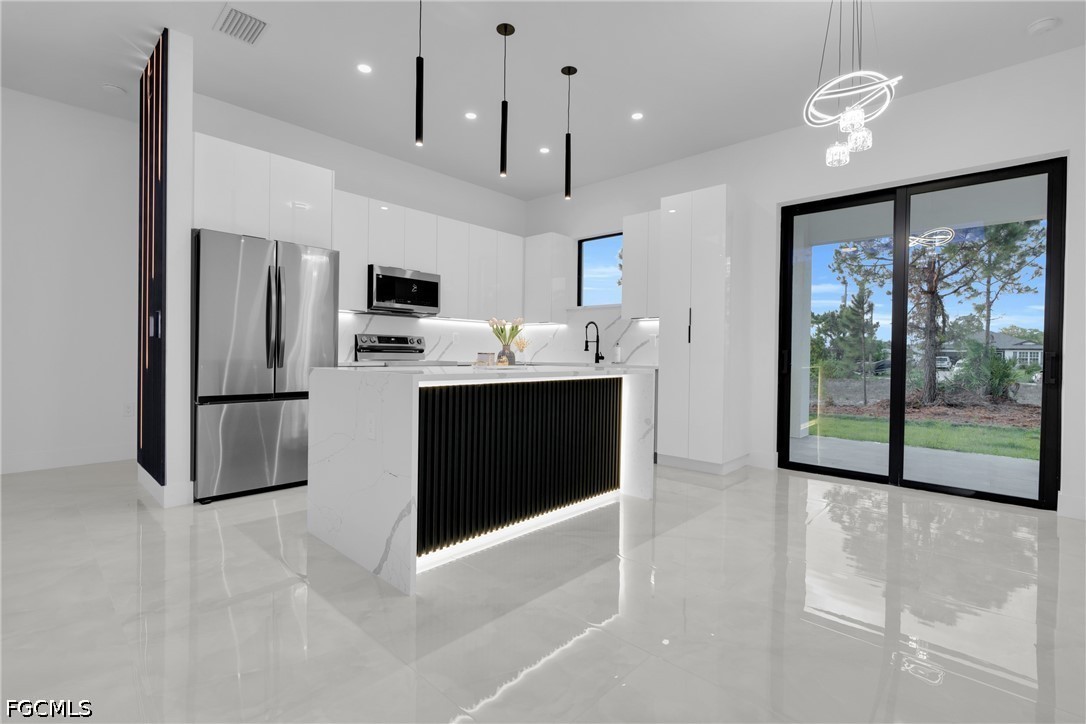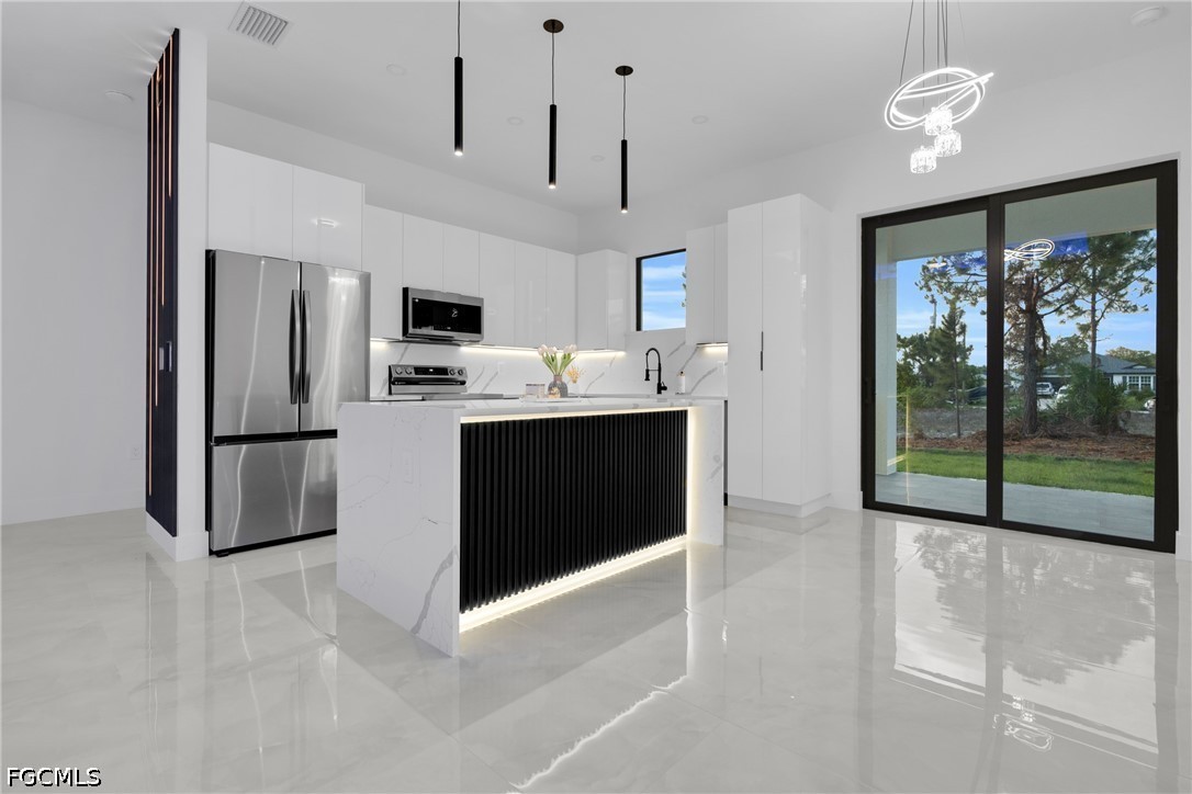 Beautiful home for sale in one of the best location in Lehigh Acres. This modern residence features impact windows and doors, porcelain tile throughout, and elegant, high-end finishes. The kitchen and bathrooms showcase stunning calacatta surfaces, complemented by custom cabinetry throughout the home. Designed with clean, contemporary style, every space feels bright, functional, and refined. This beautiful home features a modern LED lightning design. The property also includes a fully automatic sprinkler system covering the entire home and yard for easy maintenance. A perfect combination of style, comfort, and location. Make your offer today!!!