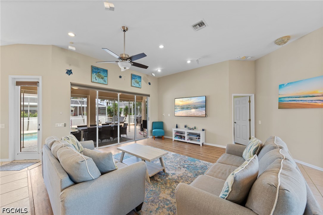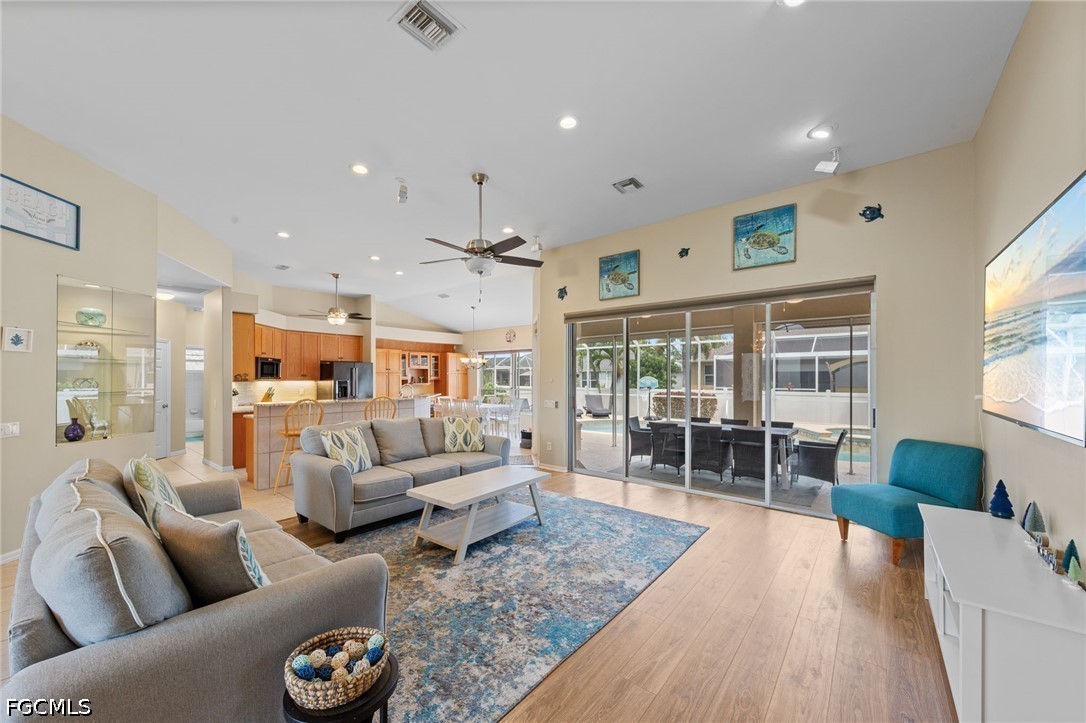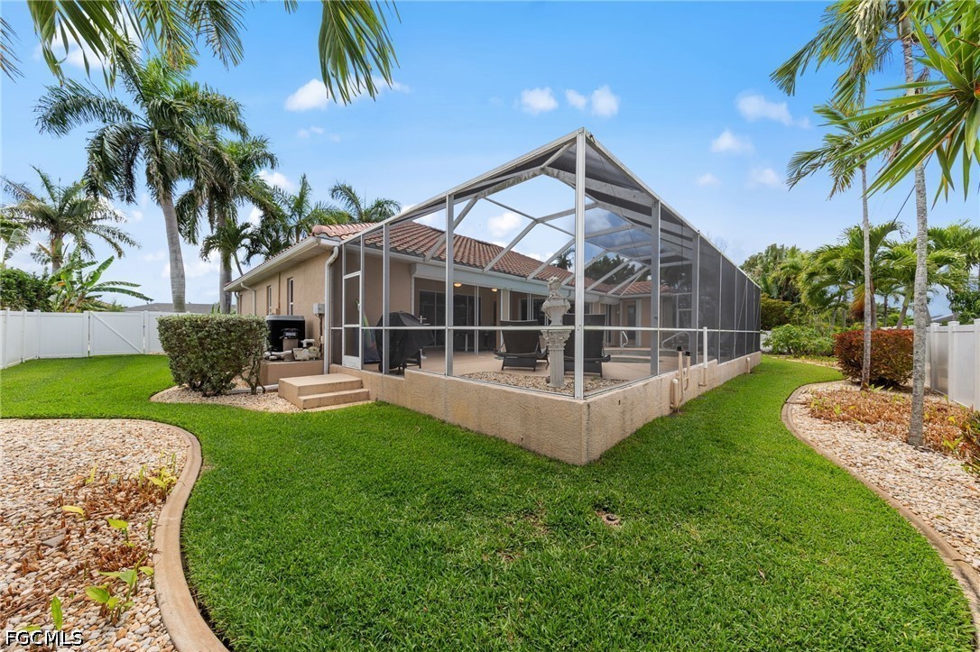 This Amazing Turnkey POOL Home with a 3 car garage in sits in a fantastic neighborhood and a NEW TILE ROOF. The oversized triple lot provides a lot of space for this home. Inside you'll find soaring ceilings and an open floor plan. The large master suite has a huge bedroom, 2 closets and a large master bathroom. The 2 guest rooms are also big and have 2 additional bathrooms. The kitchen features lots of cabinet space, a large island, granite countertops, and stainless appliances. The den is a great space for additional sleeping area or your home office. The pool area is huge and has a space and fantastic HEATED pool. The covered lanai gives you a great space to hangout or entertain your guests. This home also has roll down shutters to help secure your home. Schedule your appointment to see this Amazing home today!