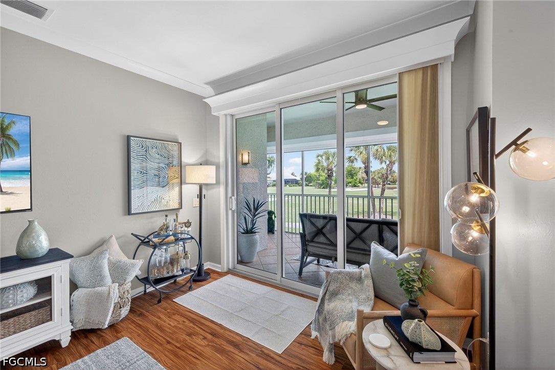 From the moment you enter, you’ll notice a seamless blend of sophistication and warmth, enhanced by high-end flooring, elegant crown molding, and a light-filled, open-concept layout. Coastal blues and soft seafoam tones are layered throughout, complementing the manicured greens and natural landscape beyond, while custom window treatments add a polished, designer finish. The level of finish rivals that found in million-dollar homes, appealing to even the most discerning buyer.