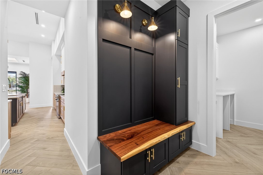 Nestled in a charming, walkable neighborhood already with city water and sewer, this nearly 2,100-square-foot residence offers a premier lifestyle just a stone’s throw from the Seven Islands project and five minutes from the upcoming Coral Grove development. Framed by gorgeous, manicured landscaping, the home immediately impresses with meticulous attention to detail and high-quality finishes, where unique accents and stunning custom designs flow through every room. The layout is thoughtfully composed, featuring 3 bedrooms—including a primary suite that rivals a luxury hotel—a dedicated den or office, and 3 bathrooms, each boasting its own distinct character. One of these bathrooms offers a convenient indoor-outdoor transition, leading directly to a private oasis where the pool and spa are complemented by a refreshing outdoor shower. At the heart of the home, the show-stopper kitchen serves as a true centerpiece, while practicality is prioritized with a functional three-car garage and a unique mudroom transition separate from the laundry room.