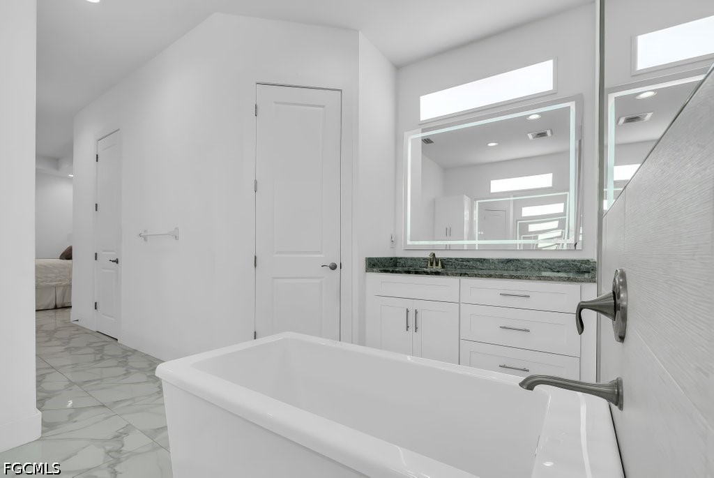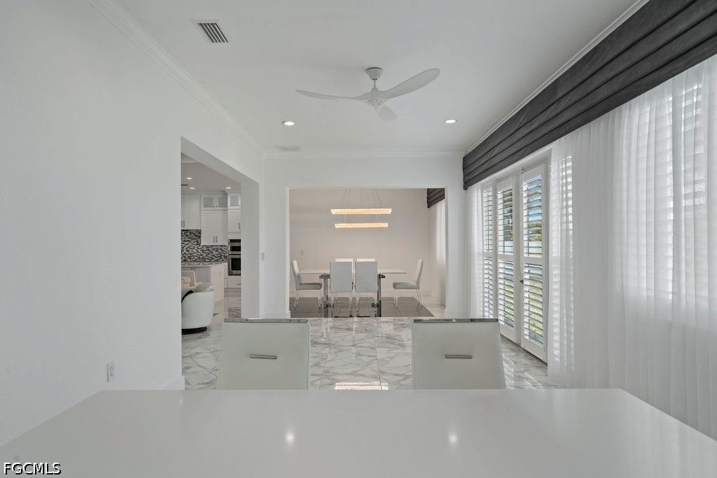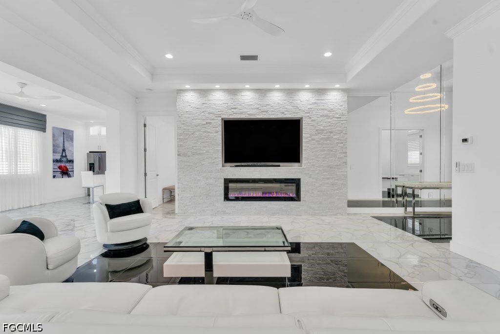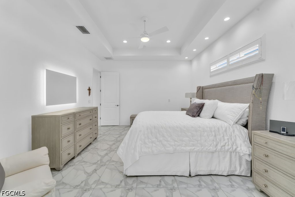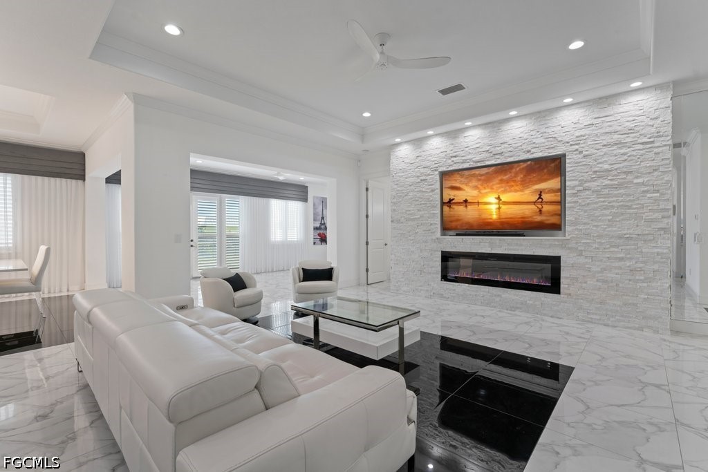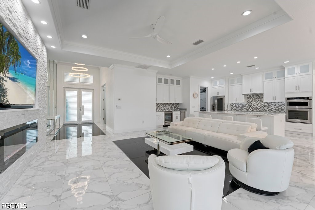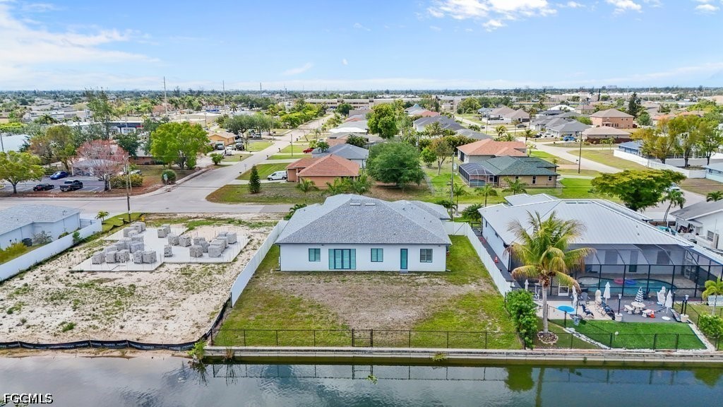 NO HOA - NO FLOOD INSURANCE REQUIRED - LUXURY WATERFRONT HOME - Welcome to a stunning expression of contemporary elegance in one of Cape Coral’s most desirable neighborhoods. Built in 2018, this thoughtfully designed waterfront residence offers over 2,700 square feet of refined living space with a seamless open-concept layout that perfectly balances sophistication and comfort. From the moment you step inside, you’re greeted by soaring 18-foot ceilings, designer lighting, and impeccable finishes throughout. The gourmet kitchen is a true showpiece, featuring ceiling-height cabinetry, premium finishes, and a layout ideal for both everyday living and elevated entertaining. The home also boasts two kitchens—one equipped with an induction cooktop and the other with propane gas, allowing for indoor grilling—along with a smart refrigerator, brand-new appliances, and self-closing cabinetry. Designed with a desirable split-bedroom floor plan, the home includes three spacious guest bedrooms, each featuring custom LED-lit walk-in closets. The private primary suite serves as a serene retreat, complete with spa-inspired finishes and luxurious details. A dedicated den offers the perfect space for a home office or flex room, while an additional exercise room adds to the home’s versatility. The main living area is anchored by a sleek custom fireplace, creating a warm yet modern focal point. Step outside to enjoy tranquil waterfront views from the oversized lot, surrounded by newer construction homes that enhance both value and appeal. There’s ample space to design your dream outdoor oasis. Additional highlights include impact-resistant windows and doors, a spacious 3-car garage, and high-end imported Italian flooring and tile, complemented by Italian designer finishes throughout. French Tergal curtains add an extra touch of elegance, and all furniture is negotiable with the sale. Ideally located near boat ramps, shopping, dining, parks, and schools, this exceptional home offers the perfect blend of luxury, convenience, and the ultimate Florida lifestyle. Tax ID - 26-44-23-C3-03054.0970