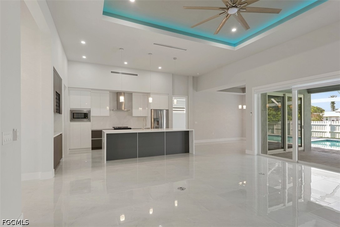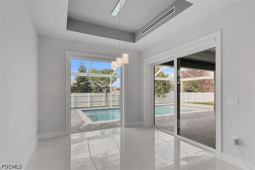 Discover the ultimate Florida lifestyle in this stunning 2024 new-construction masterpiece, situated on a rare and expansive 0.34-acre lot. This 4-bedroom, 3-bathroom residence offers over 2,200 square feet of modern luxury, highlighted by two master suites—perfect for guests or multi-generational living. The interior features a bright, open-concept floor plan with soaring tray ceilings, LED accent lighting, and sleek porcelain tile throughout. The gourmet kitchen is a chef’s dream, boasting a massive waterfall island, custom cabinetry, and high-end stainless steel appliances. Transition effortlessly to your private backyard sanctuary, where a sprawling screen-enclosed pool, premium pavers, and a fully fenced yard provide the perfect setting for relaxation or entertaining. Built with peace of mind in mind, the home includes full impact windows and doors, a durable metal roof, and an oversized 2-car garage with epoxy flooring. Located in a quiet North Cape Coral neighborhood with no HOA, this home is minutes from shopping, dining, and top-rated‌‌‌‌‌‌‌‌‌‌‌‌‌‌‌ schools.